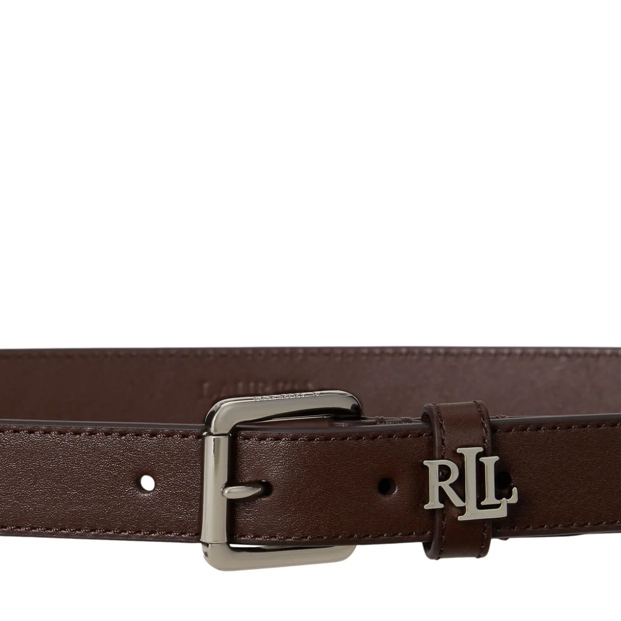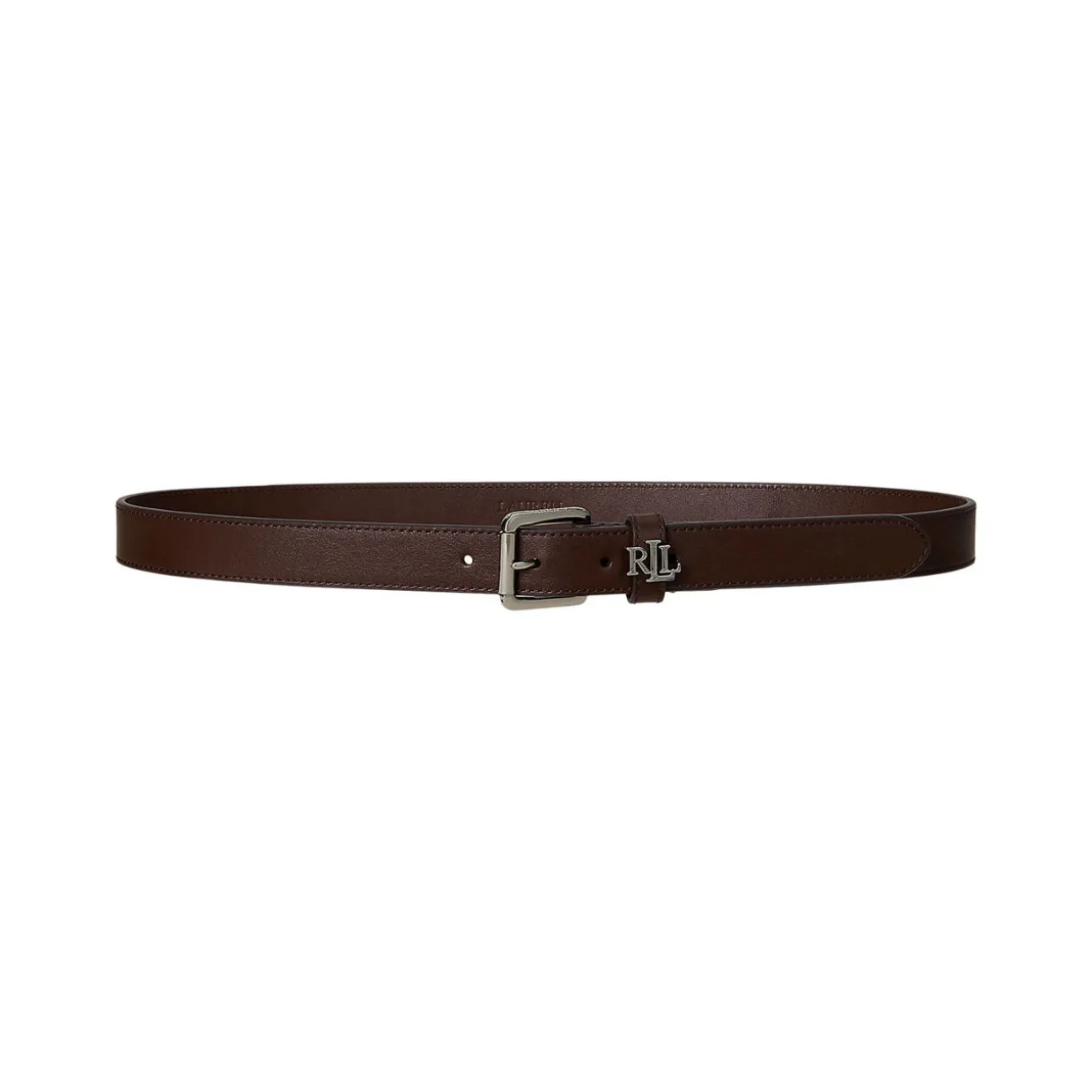 - Single-prong metal buckle, slightly pointed tip, adjustable, leather keeper with monogram logo detailing, debossed logo in the interior, gold-tone hardware, tonal stitching