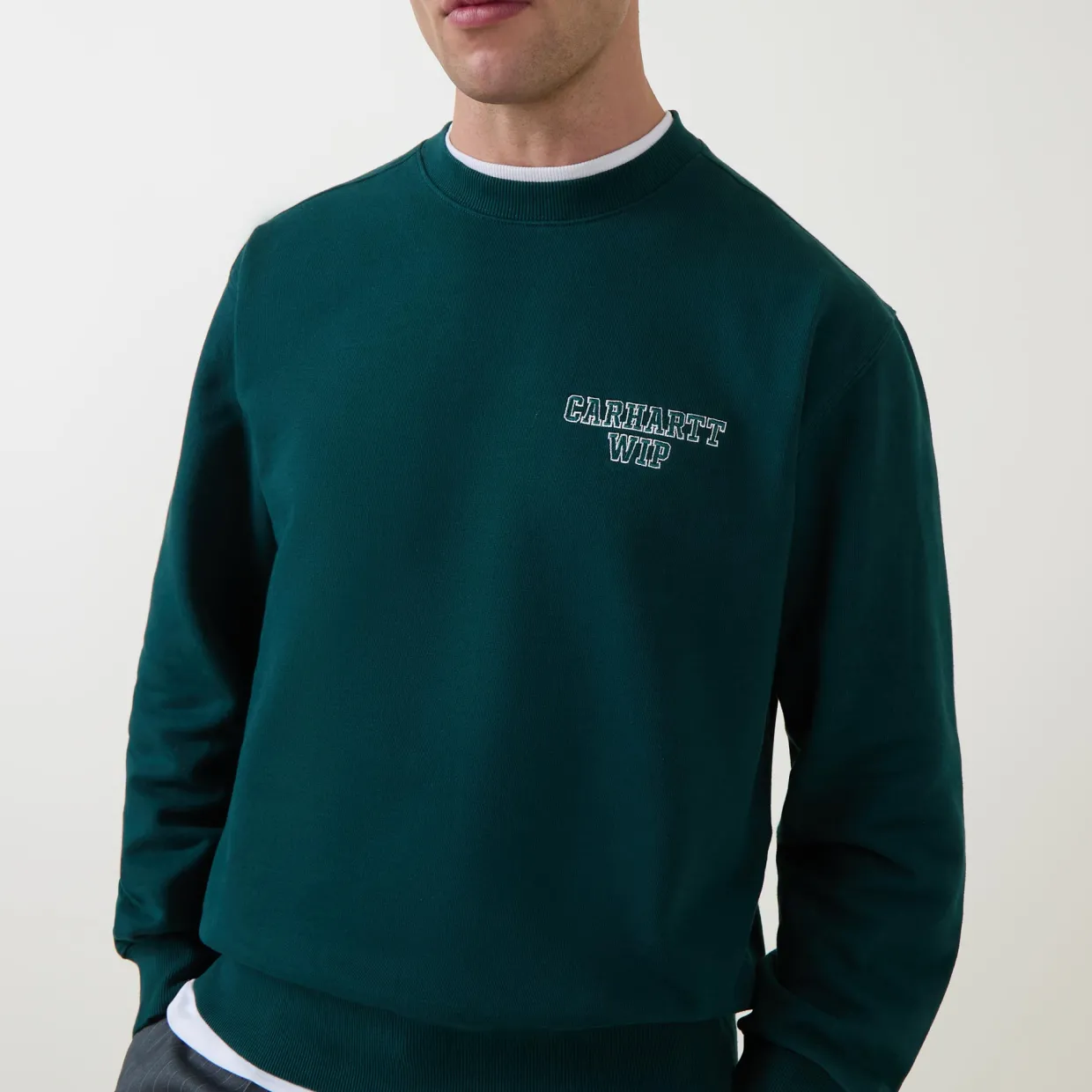 - Crew neckline, long sleeves, dropped shoulders, logo branding, elasticated hemline, stretch cuffs, pullover style, smooth fabric