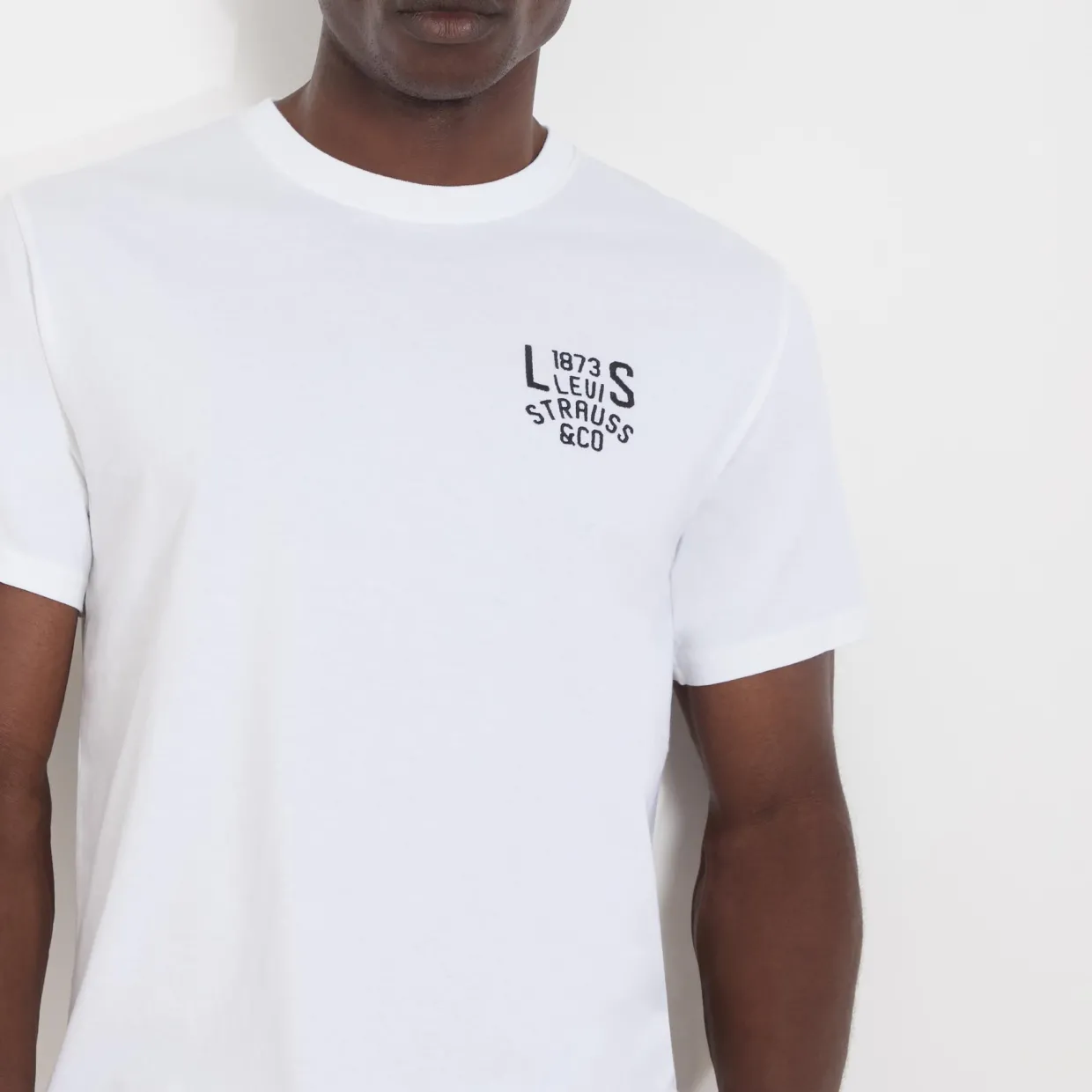- Short sleeves, crew neckline, logo branding, tonal stitching, straight hemline, smooth fabric