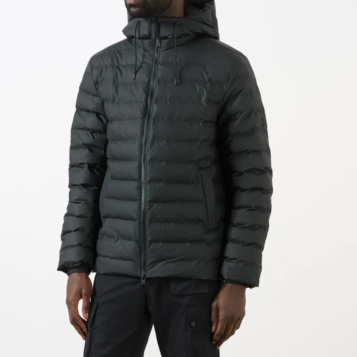 - Hood with adjustable drawstring fastening, long sleeves, elasticated jersey storm cuffs, two-way front zip fastening, two fleece-lined side slit pockets with zip fastening, one interior pocket with zip fastening, straight hem, all-over quilted design, padded, water-proof, wind-proof, lightweight, breathable, insulated, signature chambers