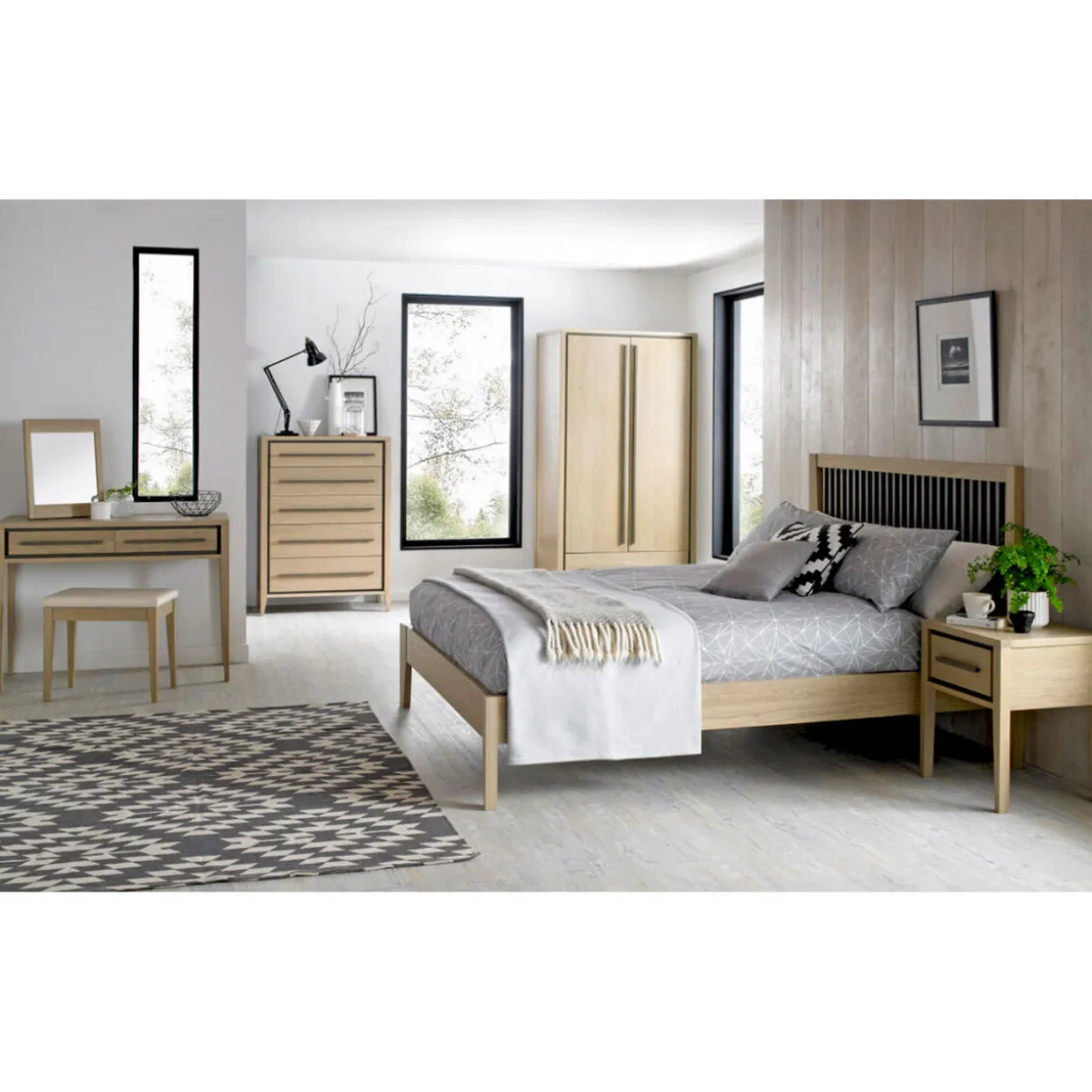 Pairing aged and weathered oaks in a sleek Scandinavian style, the Lombardy range of bedroom furniture features soothing natural tones with considerately spacious designs for a truly modern collection.