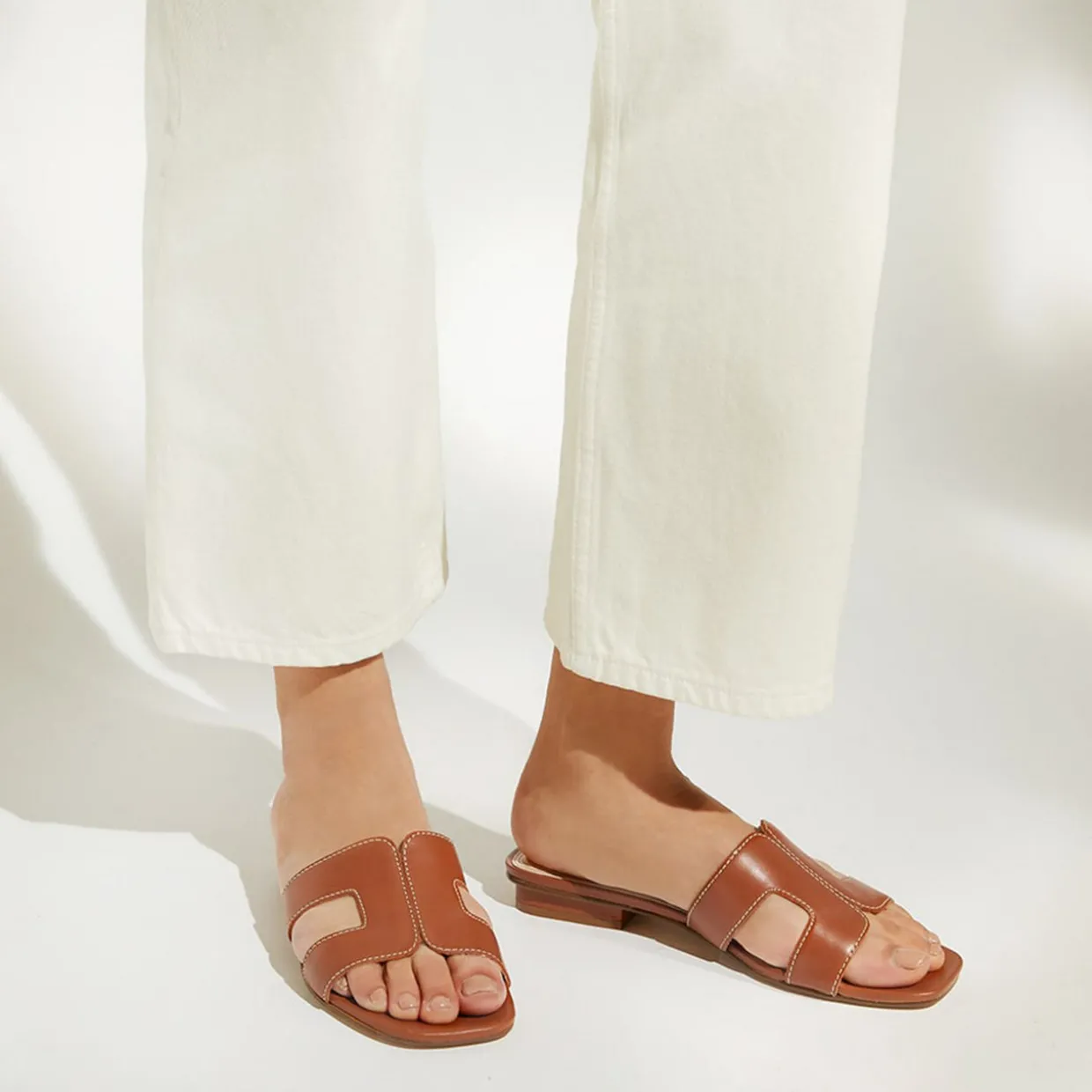 - Soft leather, cushioned sock, low heel, contrast subtle stitch detail, signature ‘DD’-interlock-branded outsoles, stitch detail, flat sole