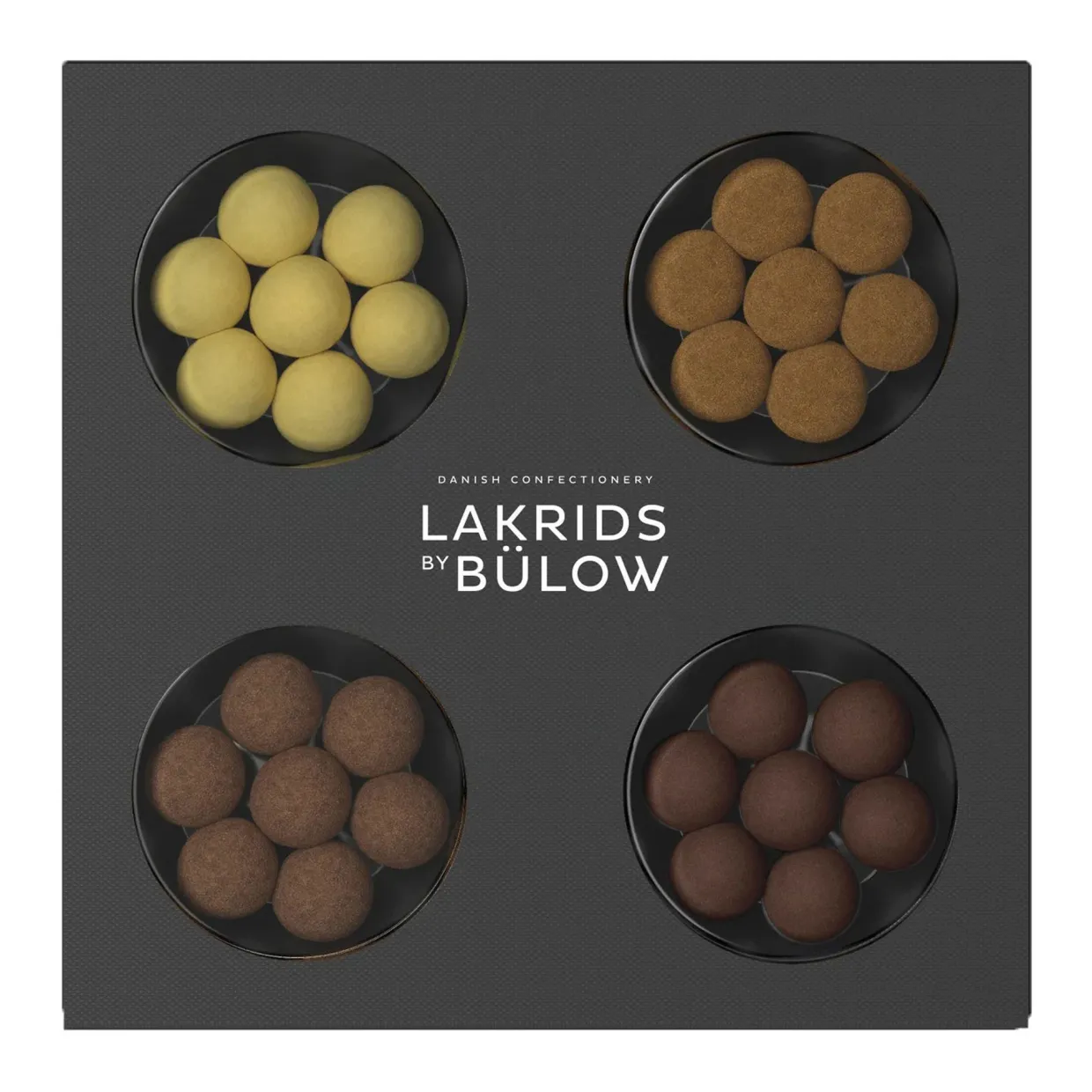 - Assorted liquorice pieces coated in rich chocolate, variety of flavours, smooth coating