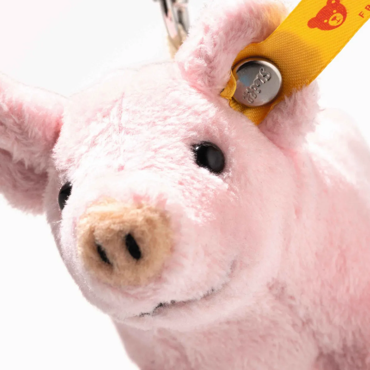 - Soft plush style, pig design, carabiner fastening, stainless steel ‘Button in Ear’, standing pose, safety eyes, Steiff logo tab