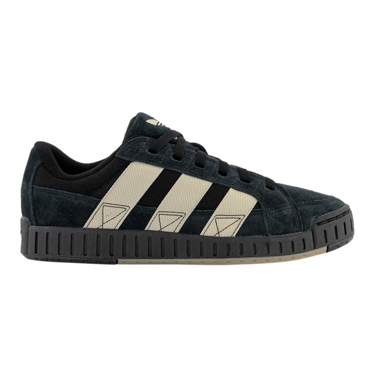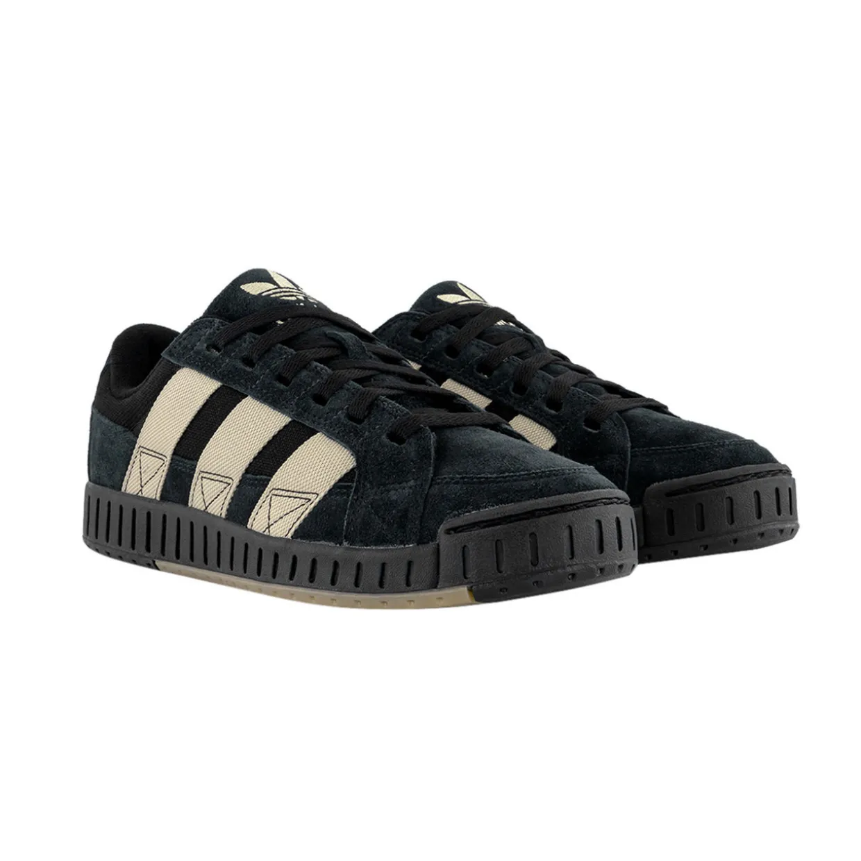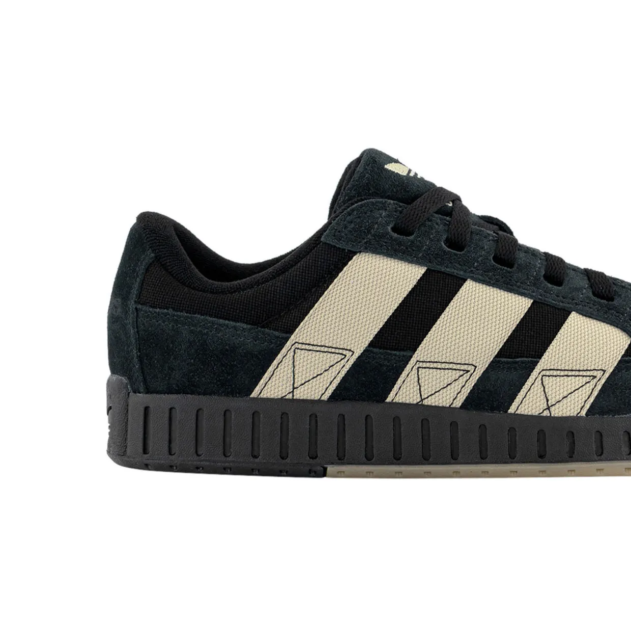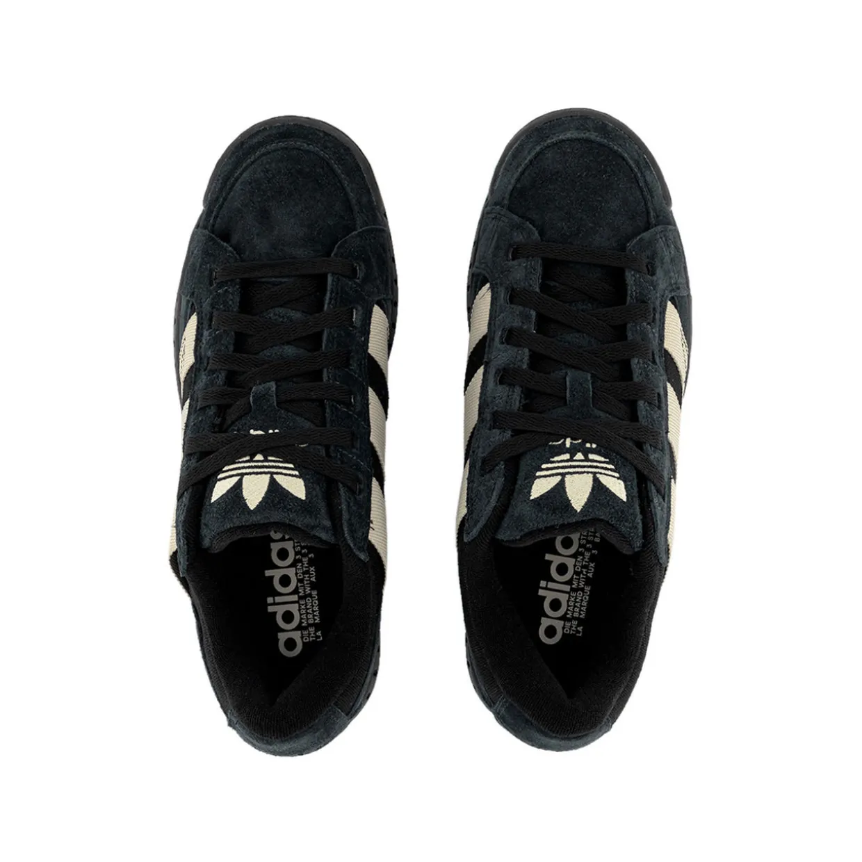 - Low-top, round toe, signature three stripe detailing, brand logo details, lace-up fastening