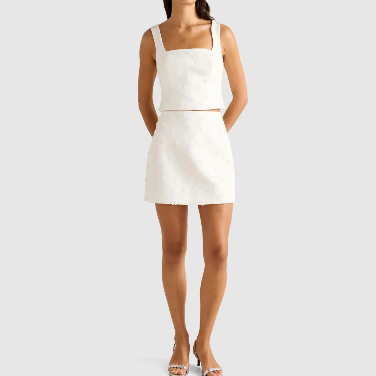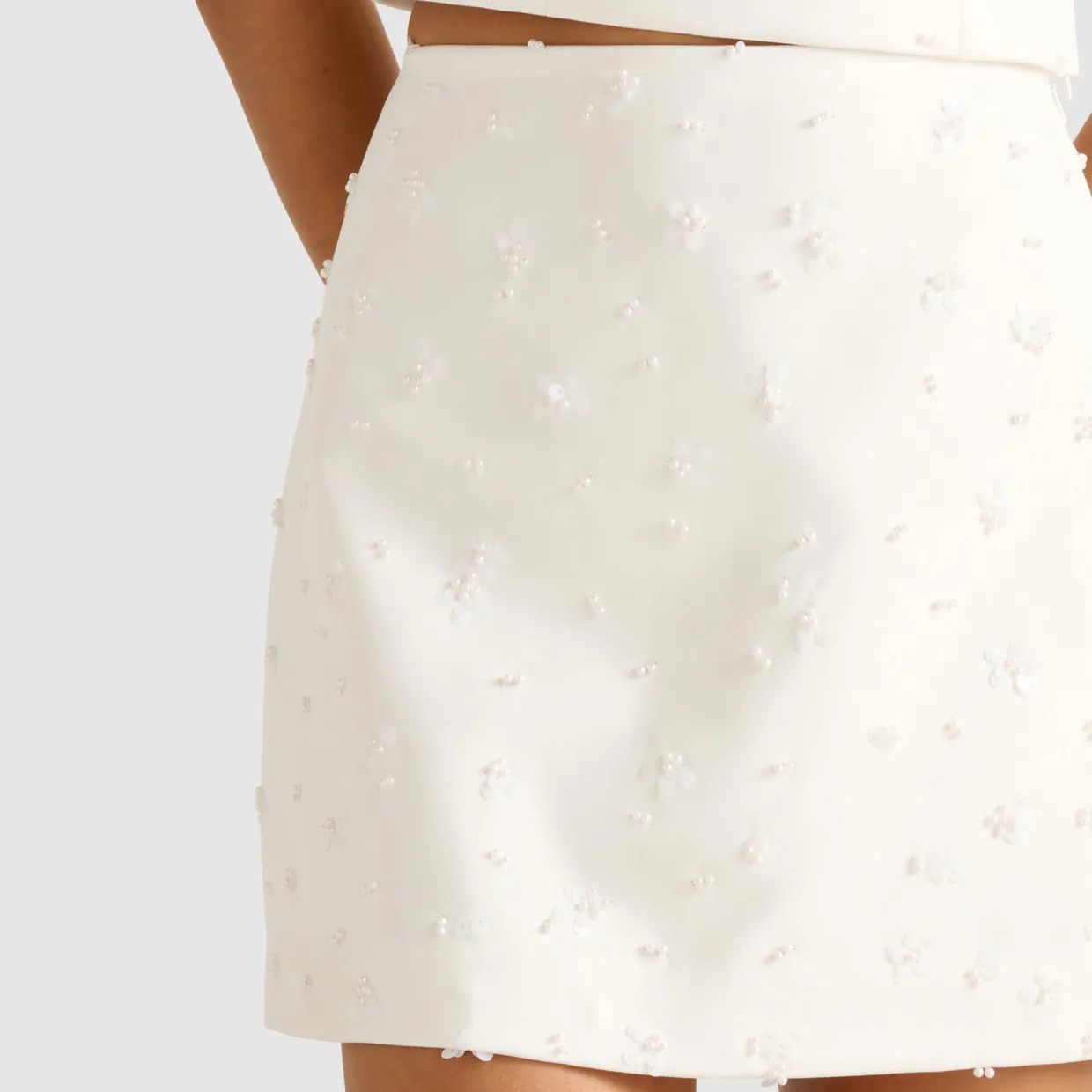 - Woven fabric, mini, sequin and pearl detailing, lined
