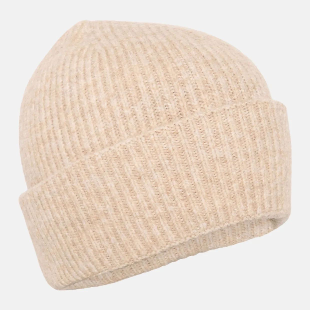 - Beanie style, turned-up brim, rib knit structure