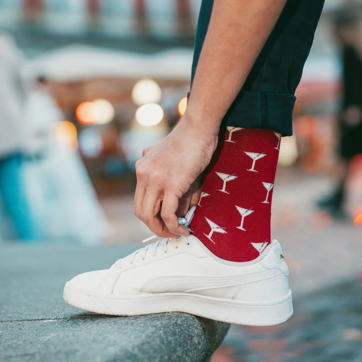 - Martini print, logo details, knitted, unique bamboo blend, reinforced heel and toe, hand-linked seams for added comfort, soft, durable