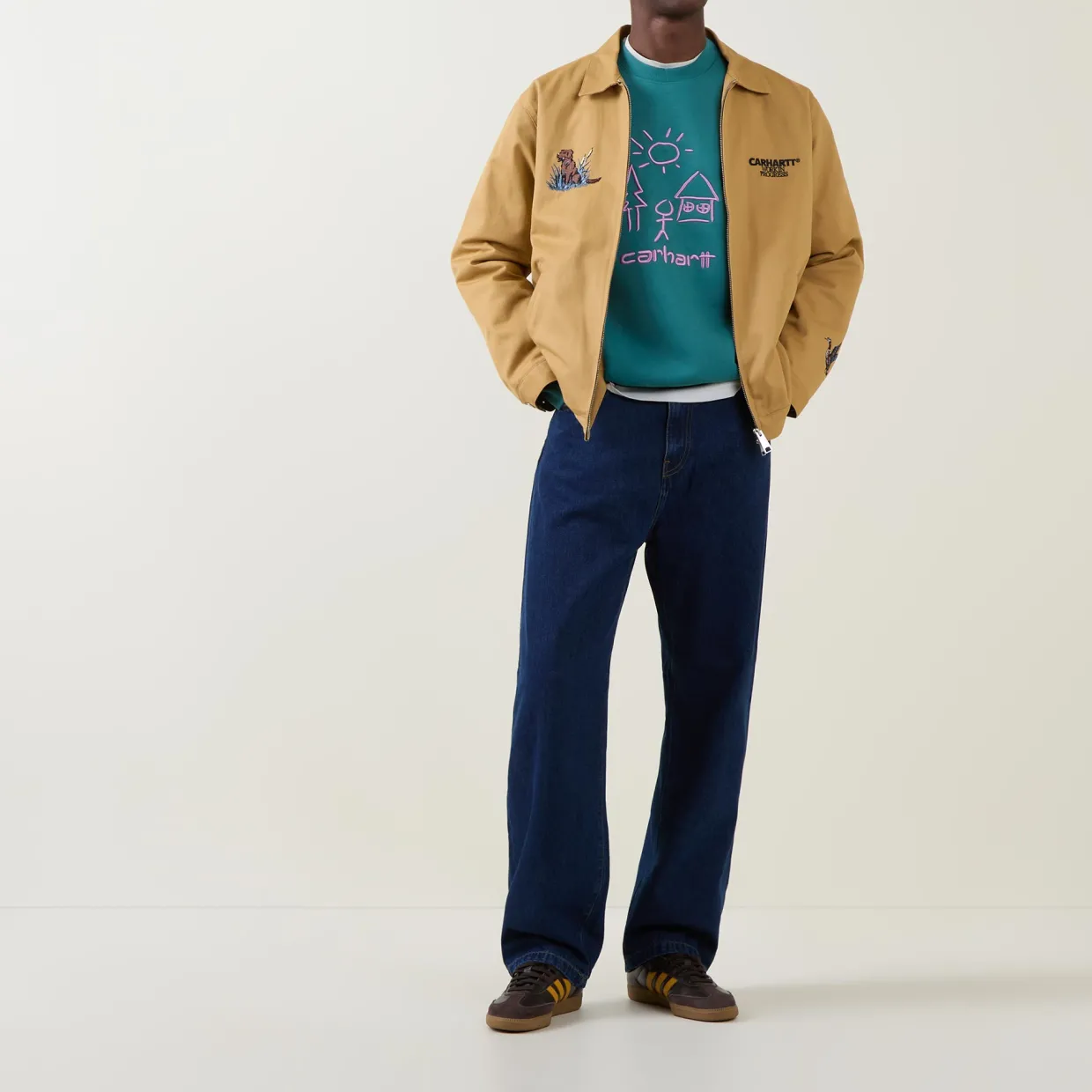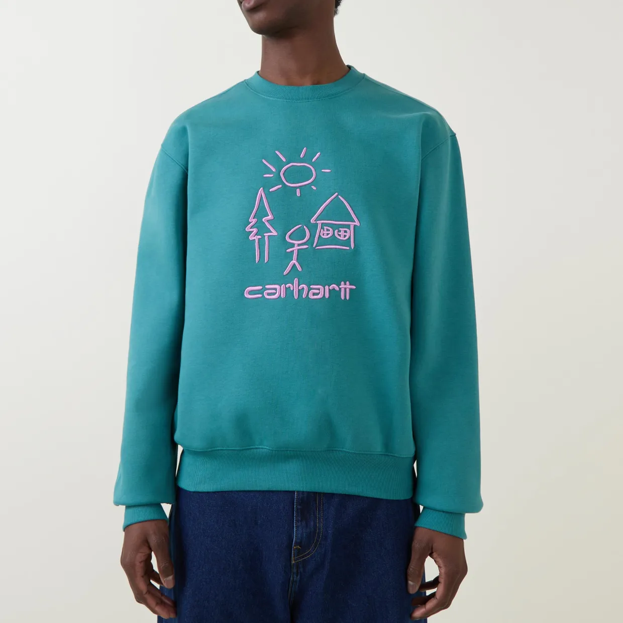 - Graphic embroidery, crew neck, ribbed trims
