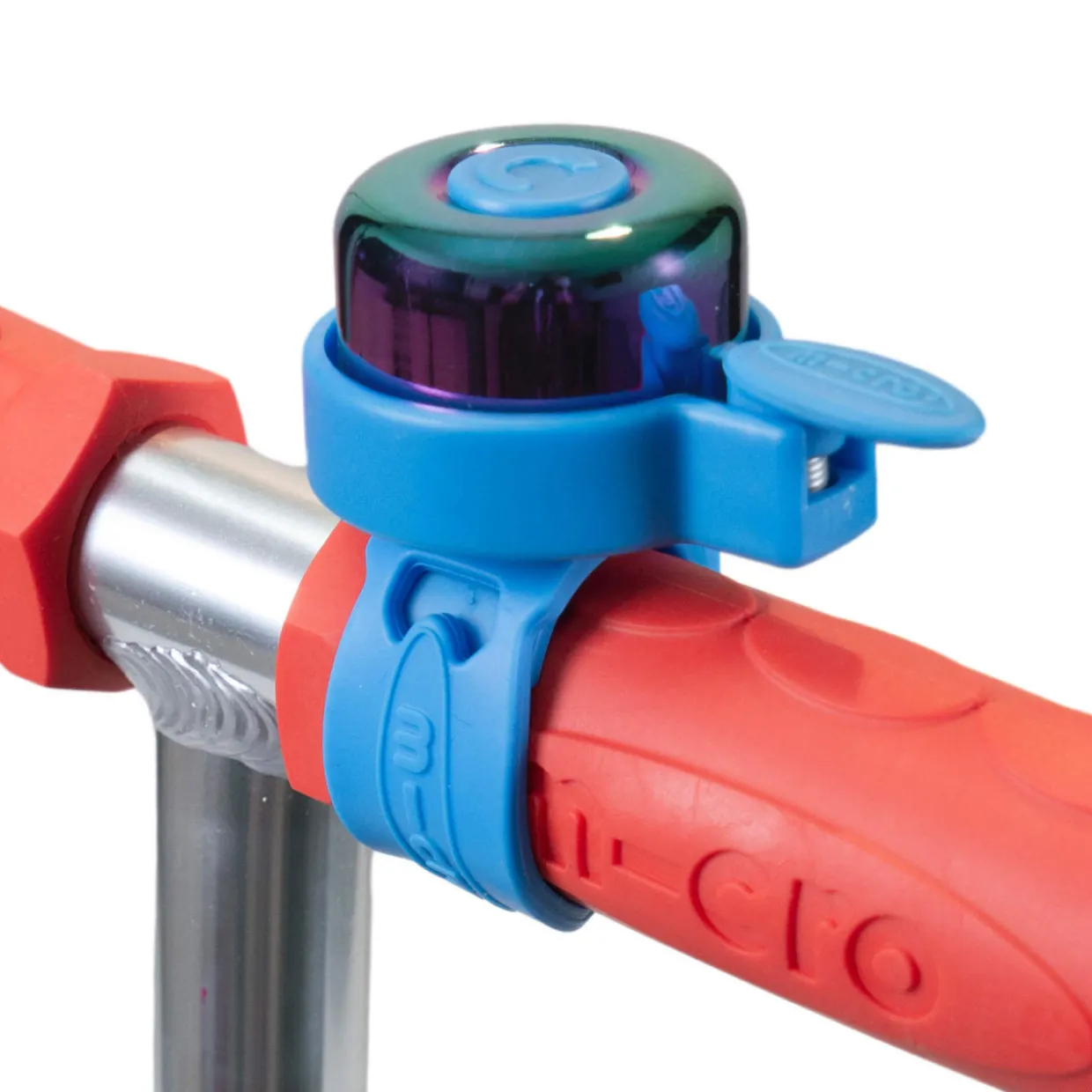 - Suitable for all scooters and bikes in the Micro range, waterproof, flexible silicone strap, multiple fastening settings, neochrome oil finish, loud ding sound