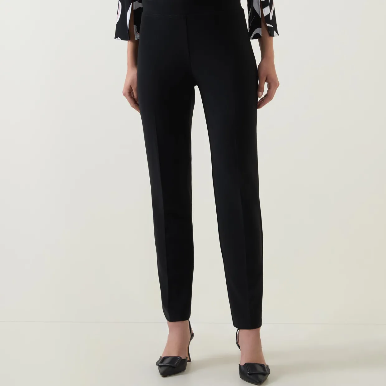 - Mid-rise, elasticated waistband, pull-on design, straight leg