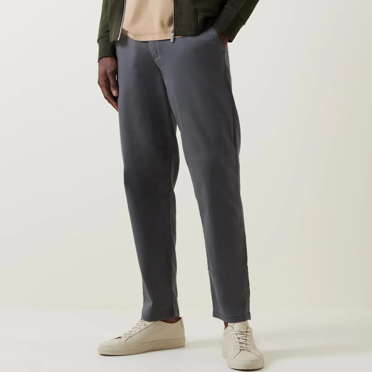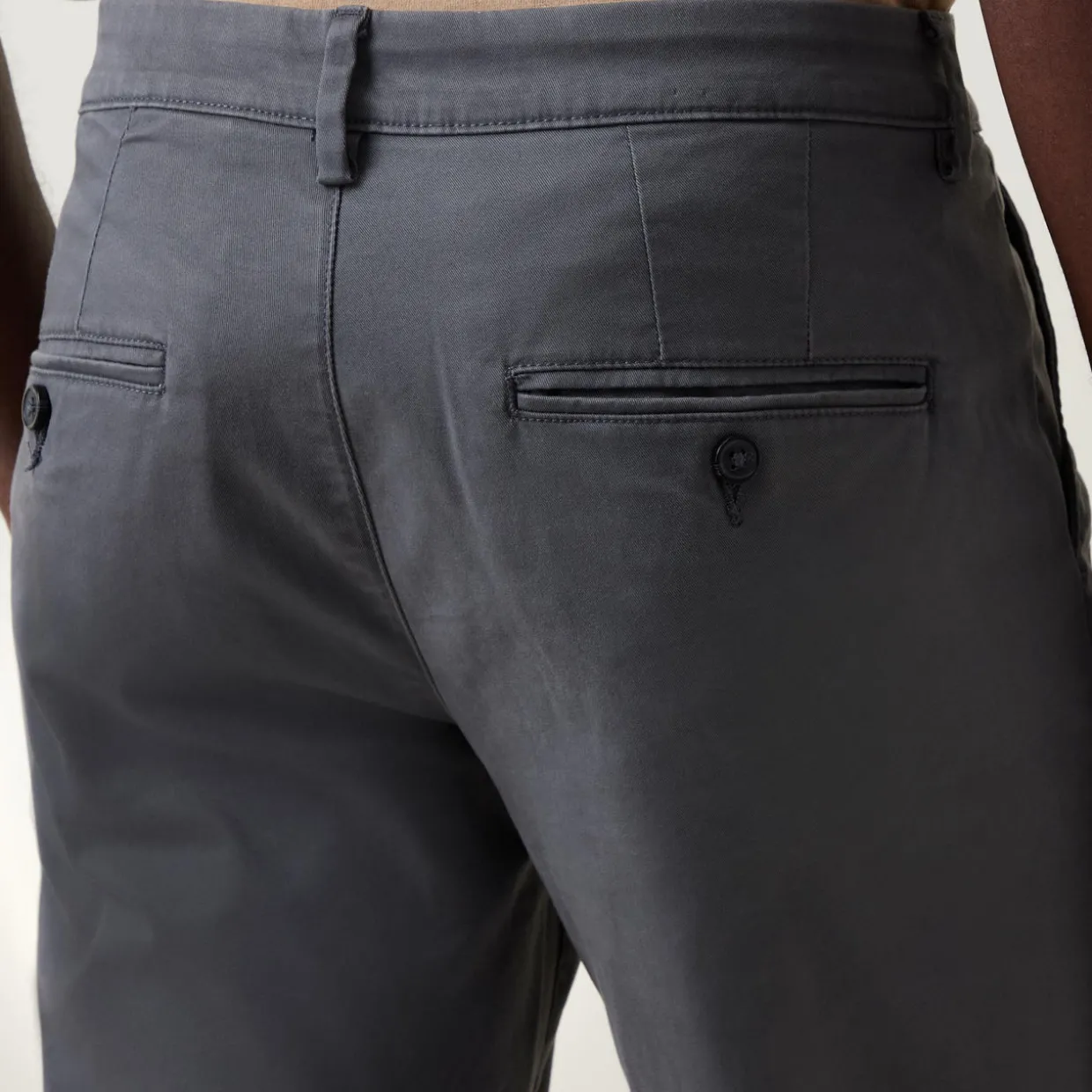 - Regular waist, straight fit, zip and button fastening, back welt pockets, belt loops.