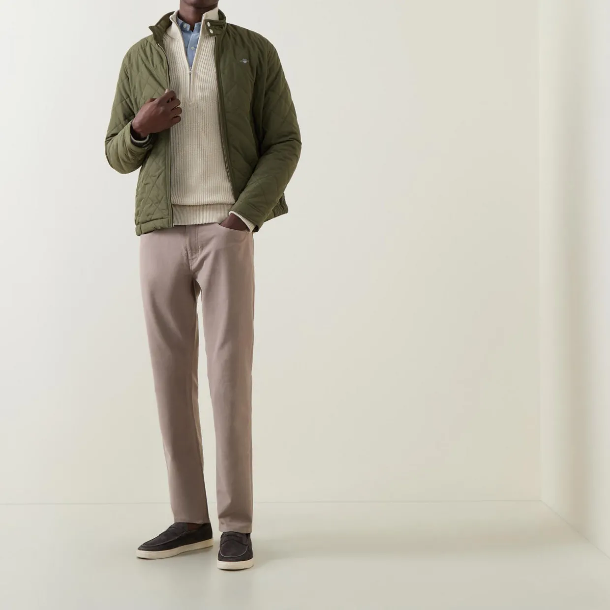 - Button and fly zipper fastening, five pocket style, belt loops, logo badge