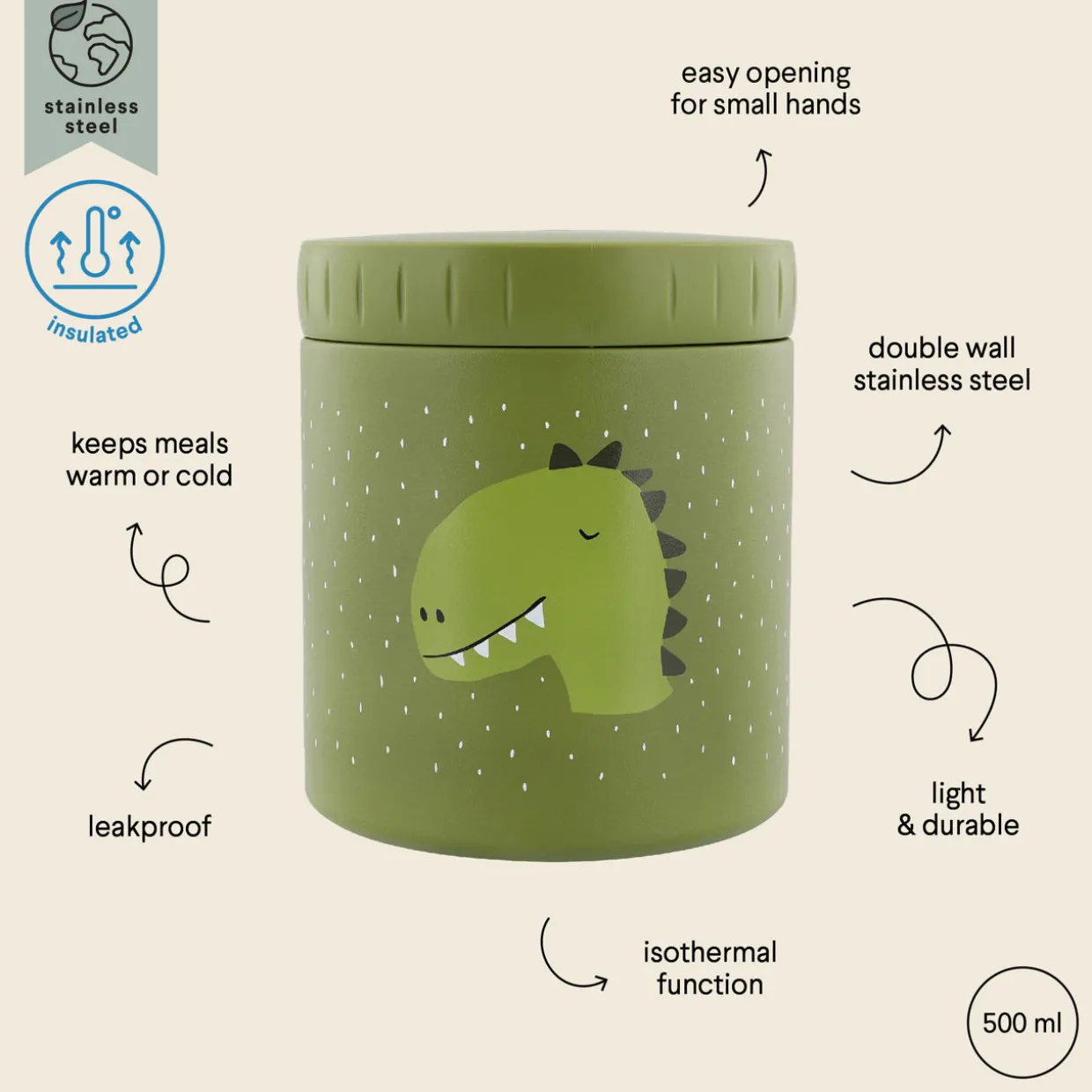 - Leak-proof, keeps meal warm or cold, isothermal function, insulated stainless steel design, lightweight, durable, Mr. Dino design