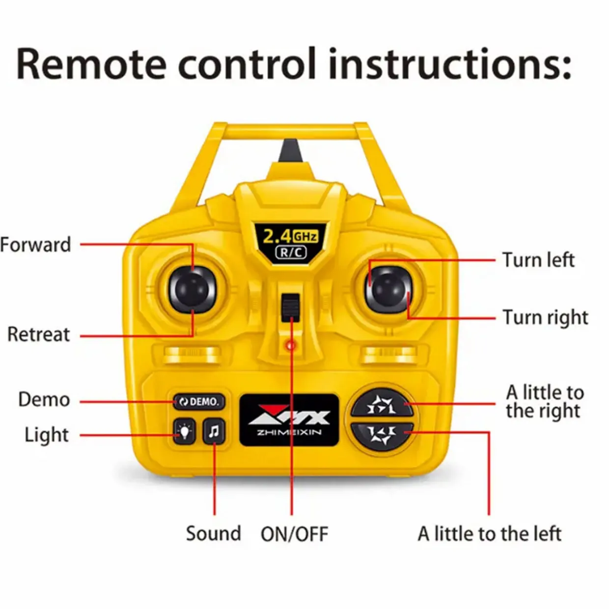 - Fully remote controlled, cement mixer truck design, brand logo details, sounding trumpet, light-up headlights, rotating truck hopper for mixing and unloading