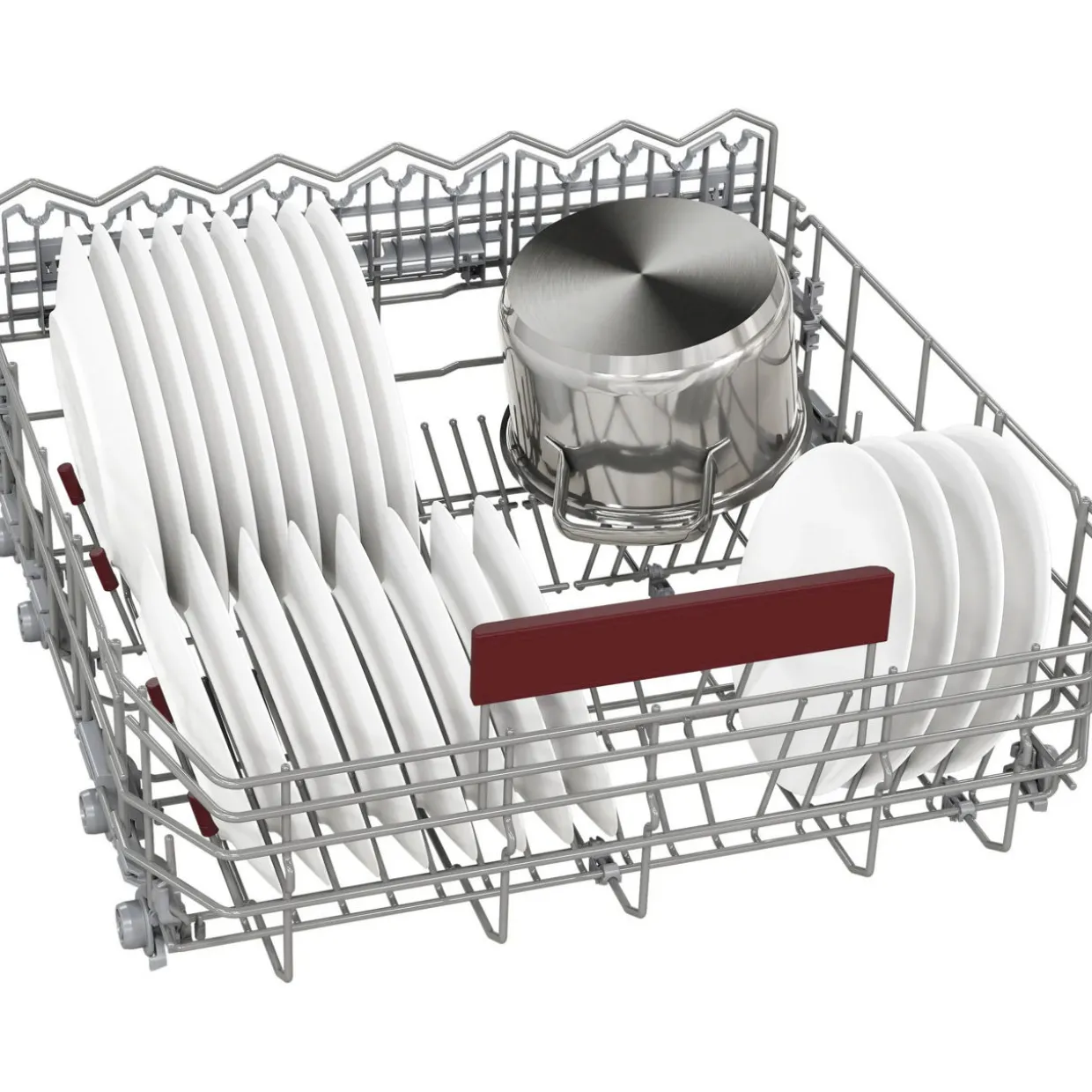Your Flex Cutlery Drawer is a safe spot for your cutlery, knives, or kitchen utensils, while your Flex 2 Baskets offer six foldable flip tines each in the top and bottom baskets. Simply flip the Touchpoints in NEFF red and adapt the baskets accordingly. You would like to add a few items to the bottom basket? Our 3-stage Rack Matic top basket can be lifted any time – even if it’s already fully loaded. Soft silicone sliding protectors in the top basket take great care of your glasses, and a higher frame in the bottom basket gives solid support to tall items like chopping boards.