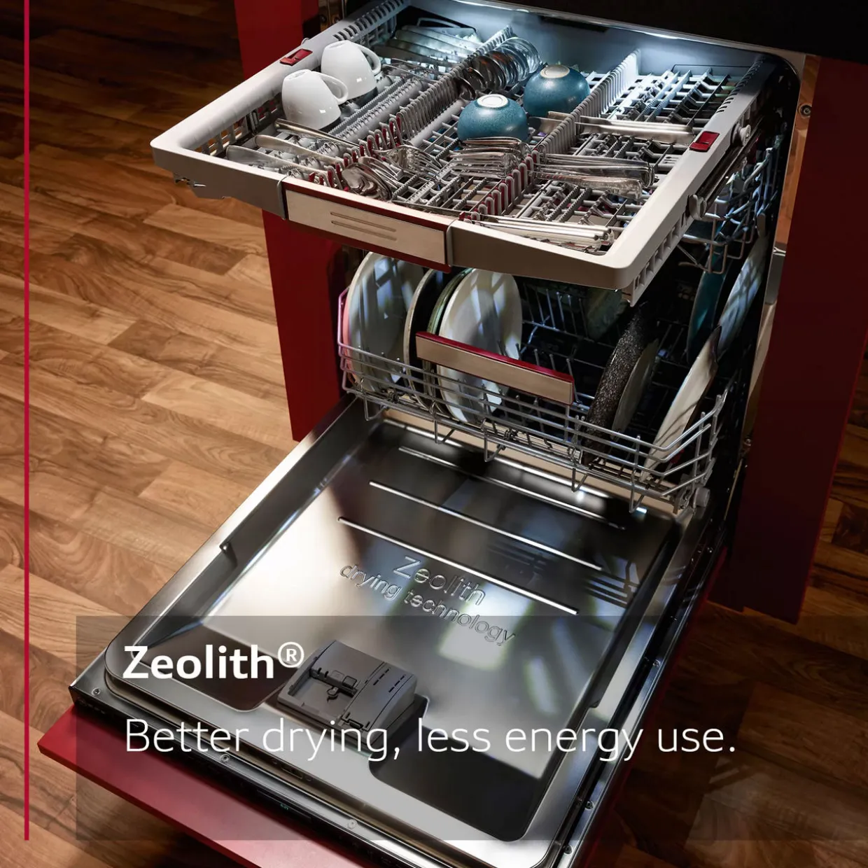 The Zeolith® compartment contains natural minerals that work in harmony with your dishwasher. During the drying phase, they absorb moisture and release heat. Items of all shapes and sizes – from glasses to dishware and cutlery – are finished to a sheen. So you’ve got time to start your next cooking adventure.