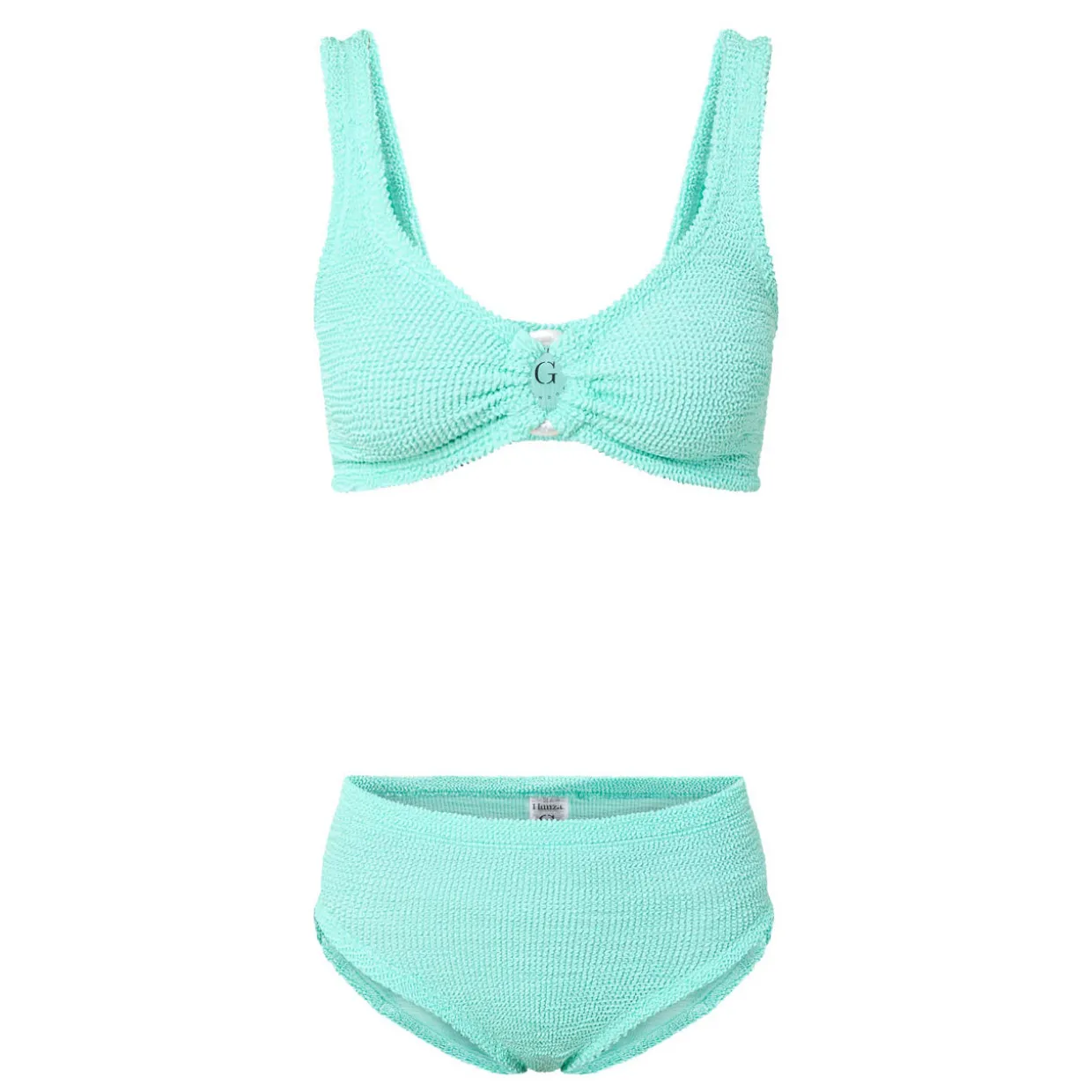 - Bikini top: Two wide fixed straps, low cut back, elasticated, ruched detailing, ring embellished detail, The Original Crinkle™ fabric. Bikini bottoms: High-rise, elasticated, The Original Crinkle™ fabric