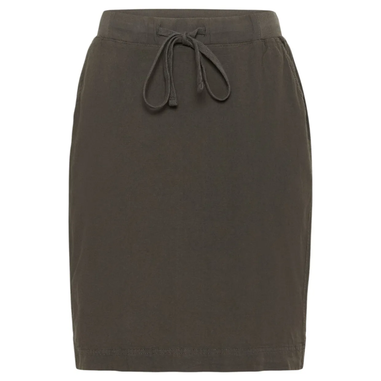 - Casual style, soft fabric, elasticated drawstring waistband, oblique front pockets, mini length, straight silhouette