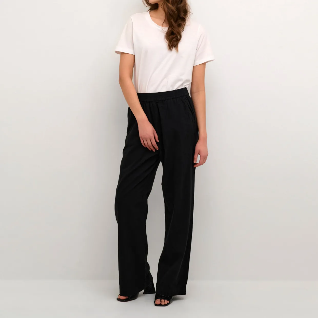 - Elasticated waistband, pockets, wide-leg, casual fit