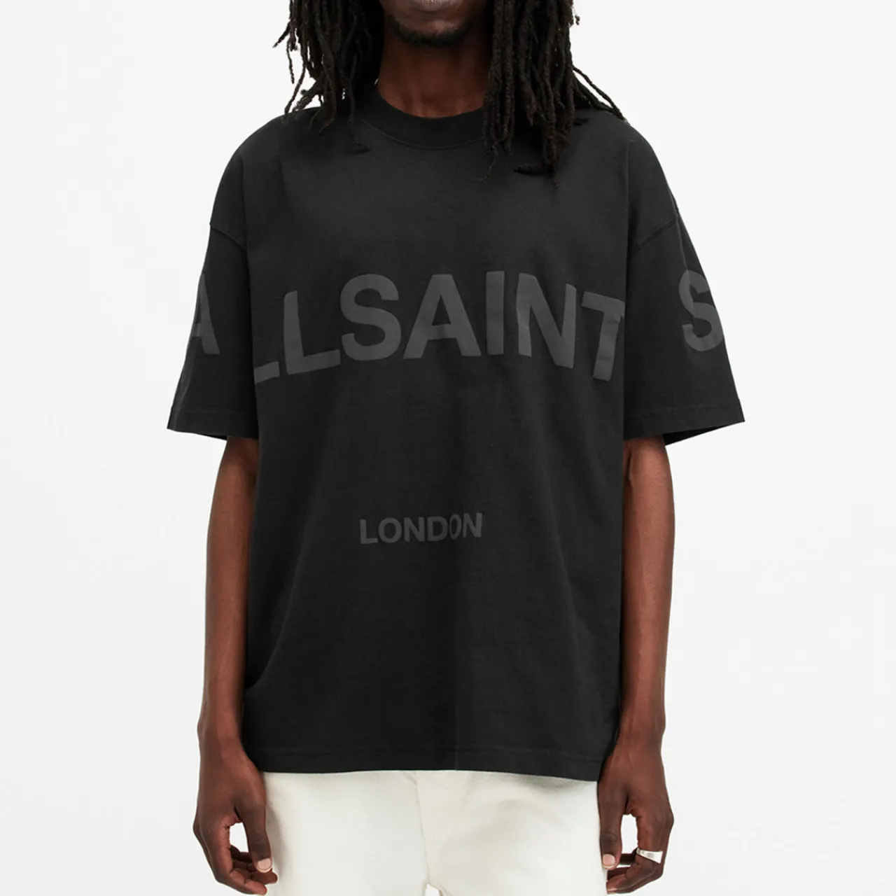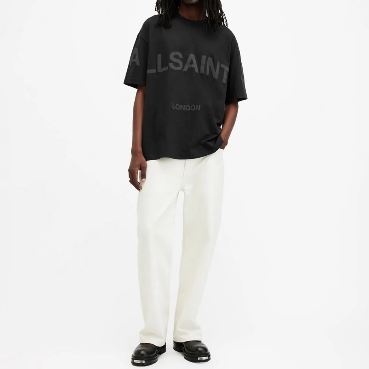 - Round neckline, short sleeves, dropped shoulders, straight hemline, tonal logo print