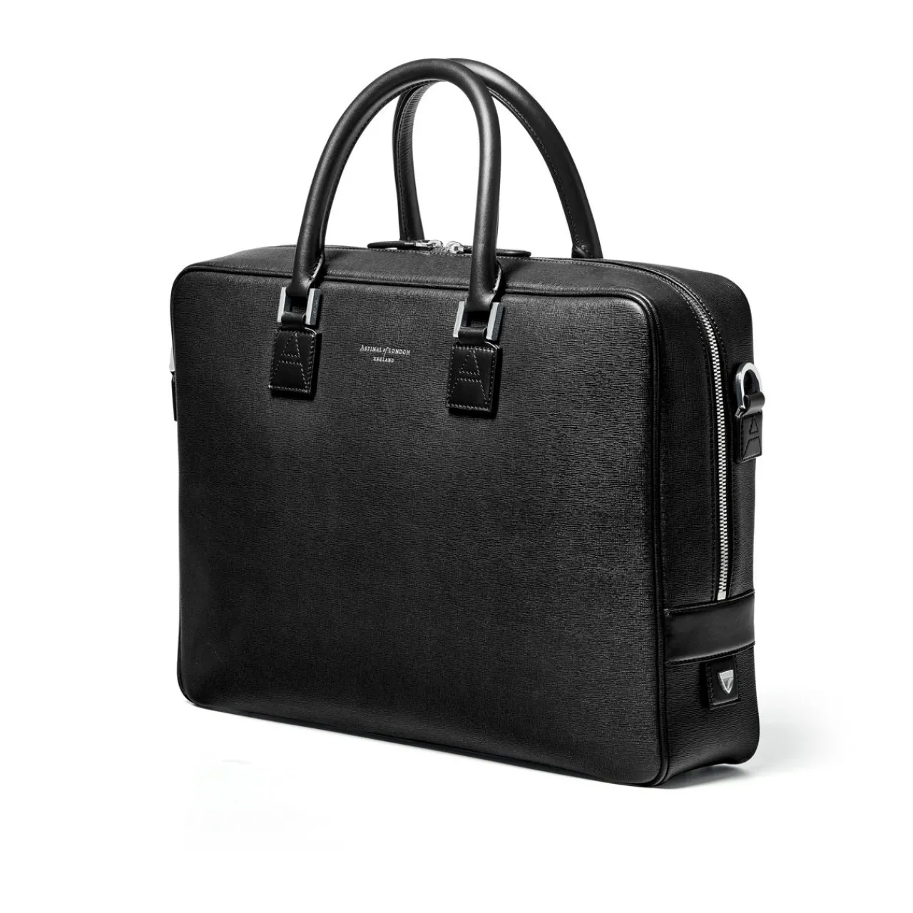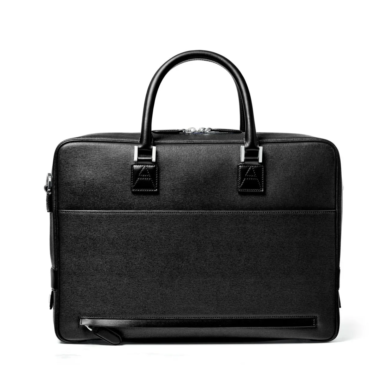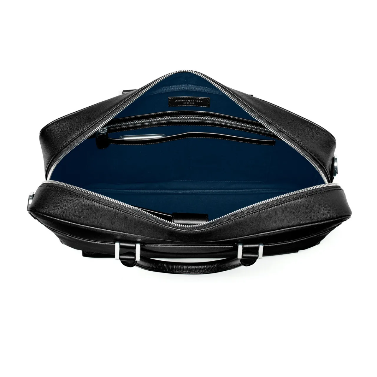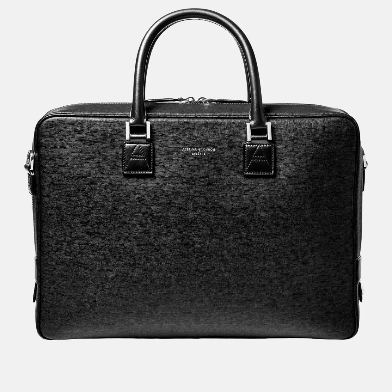 - Interior: One main compartment, large pocket with zip fastening two slip pockets, capacity for a 14in laptop, padded compartment for an iPad Pro 12.9, lined