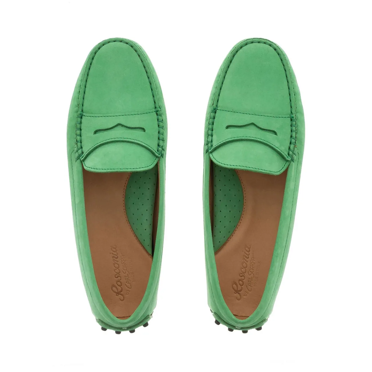 - Round shallow toe, penny-trim detail, pimple sole, lined in leather