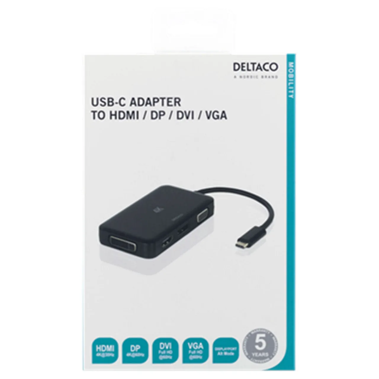 Deltaco USBCMULTIUSB-C to HDMI/DP/DVI/VGA 4k adapter, DP Alt Mode, black. Always get ready for your next conference or meeting with this plug-and-play USB-C all-in-one collection.