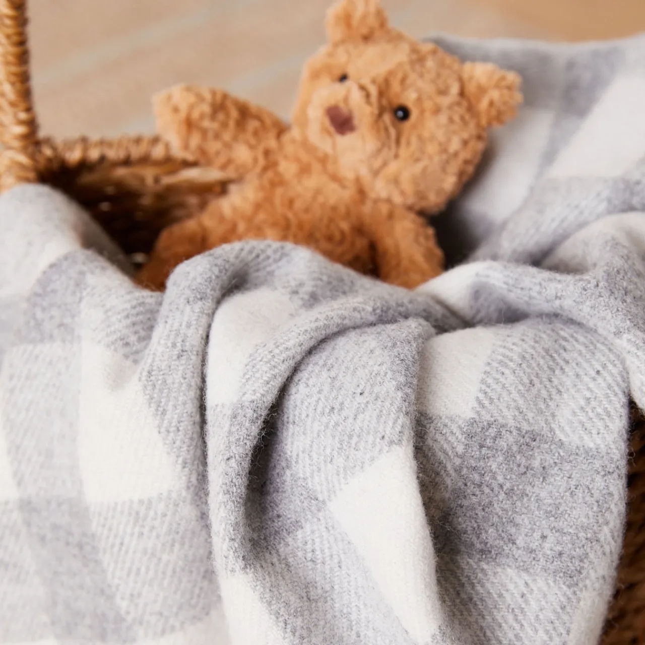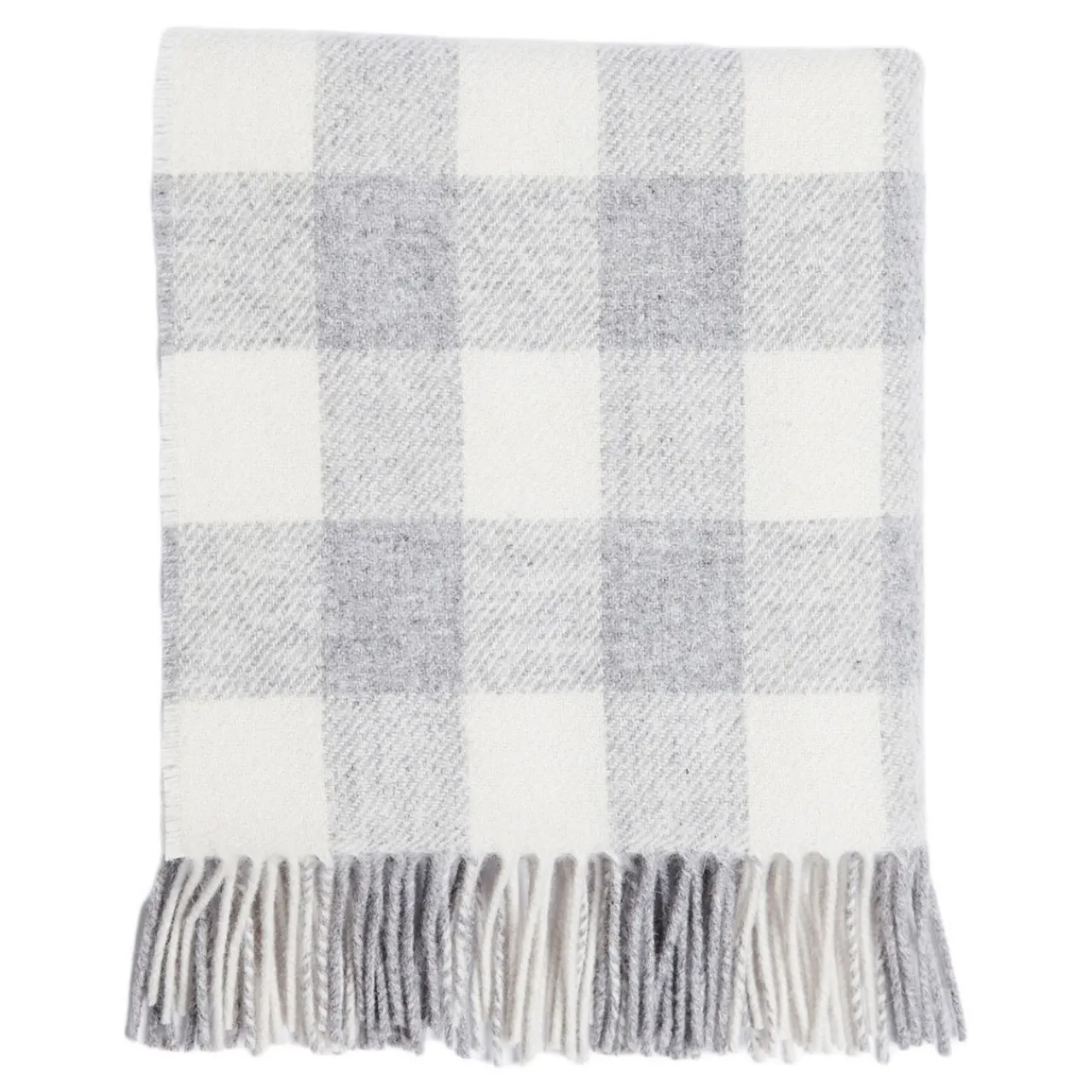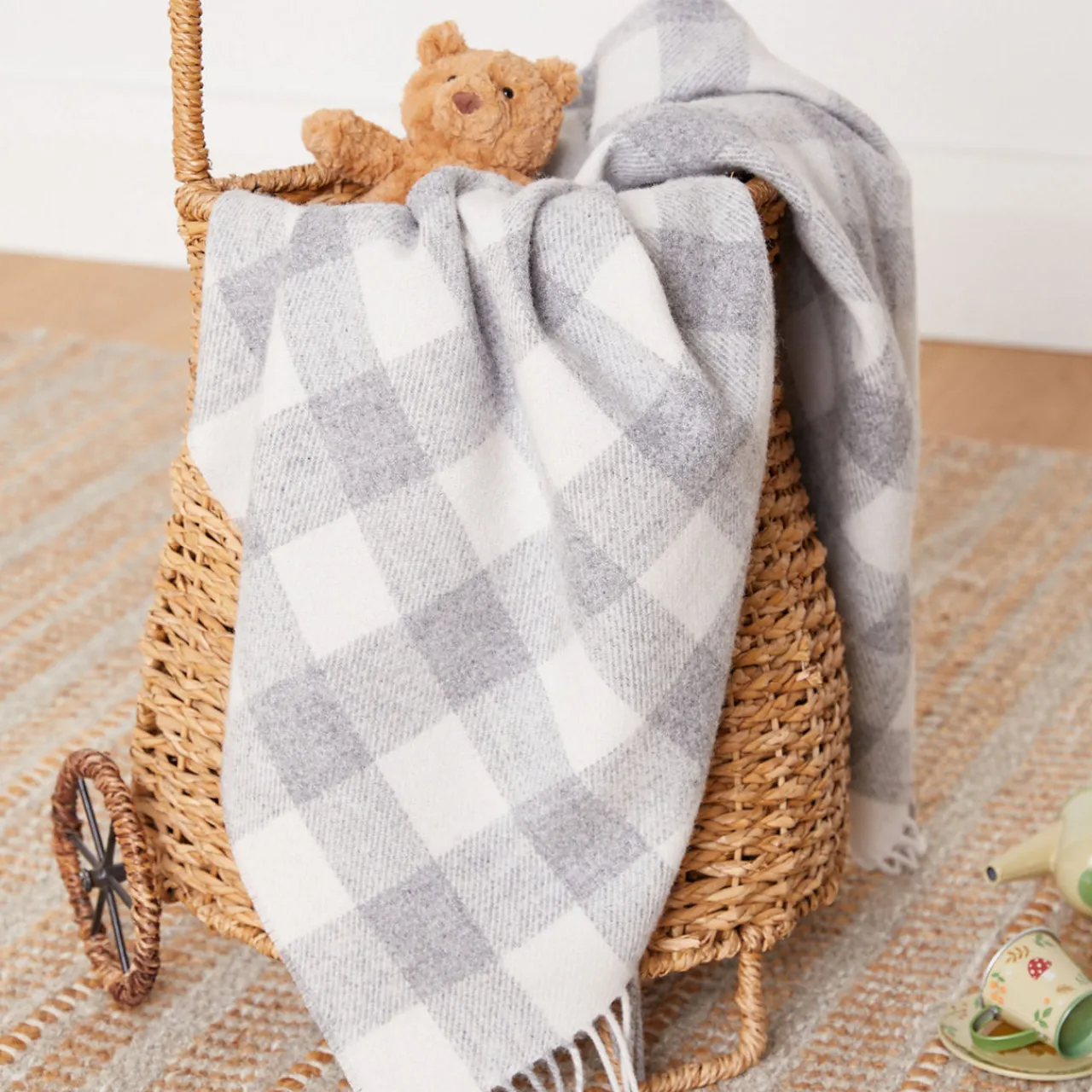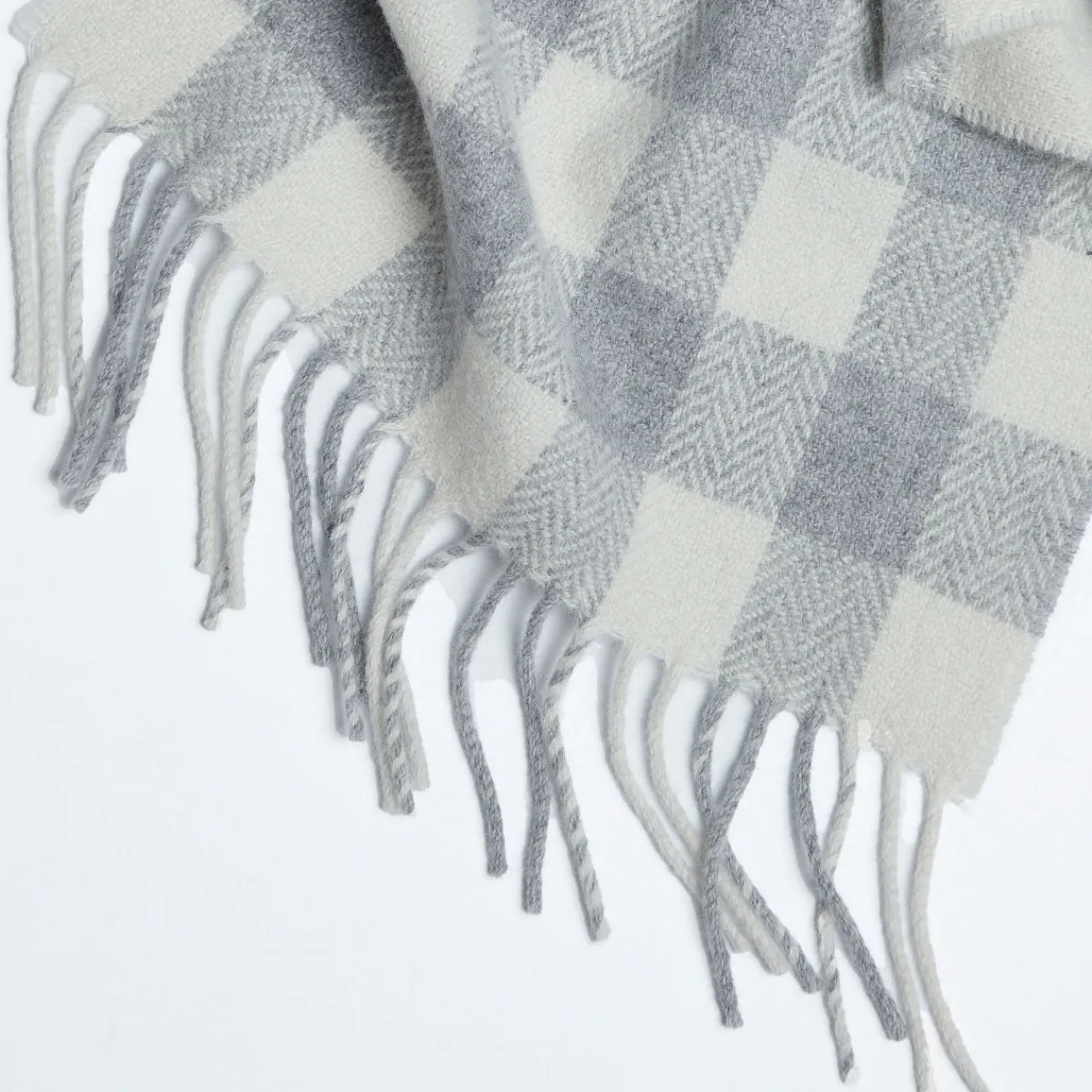 - Fringed trims, check pattern, soft feel, logo badge, gift box