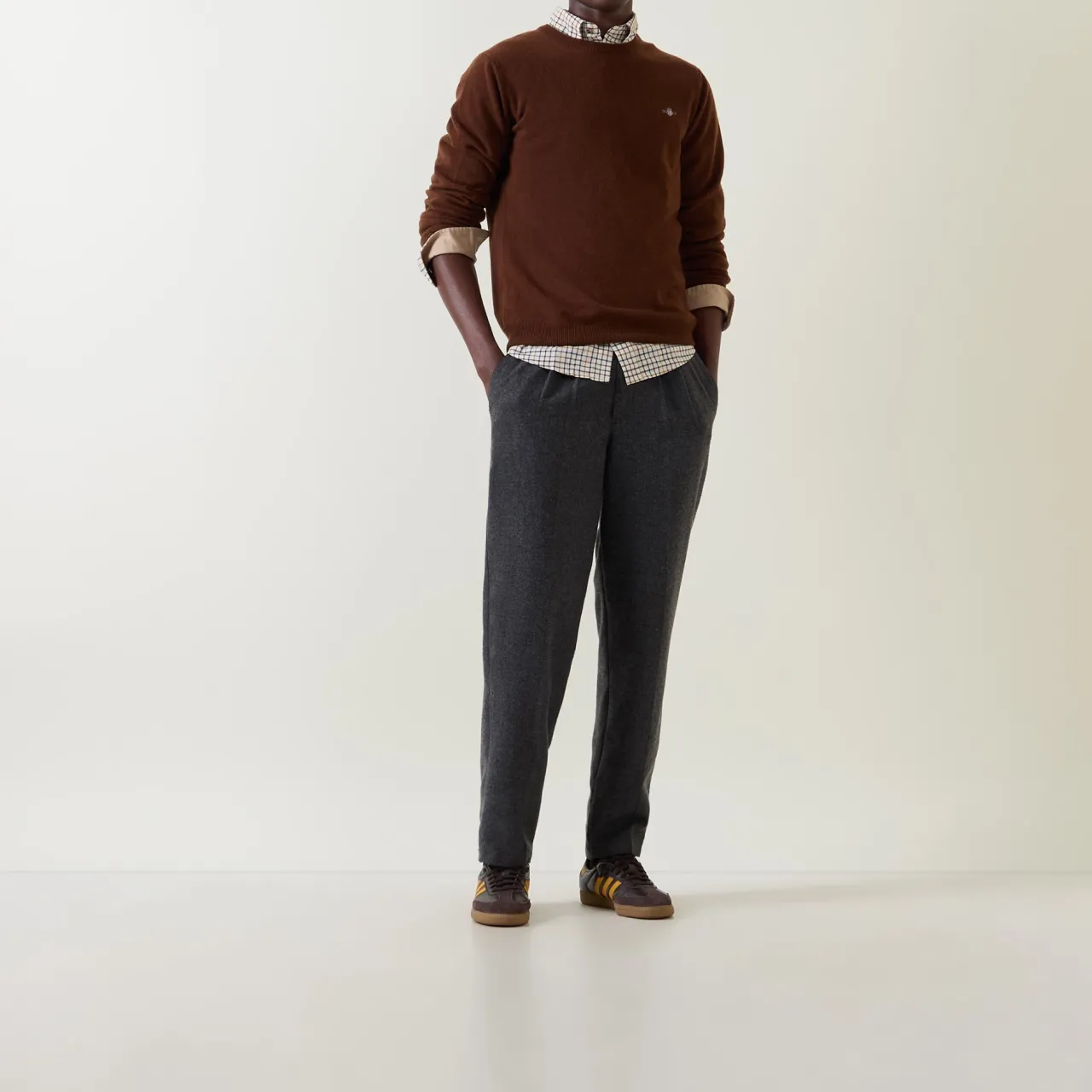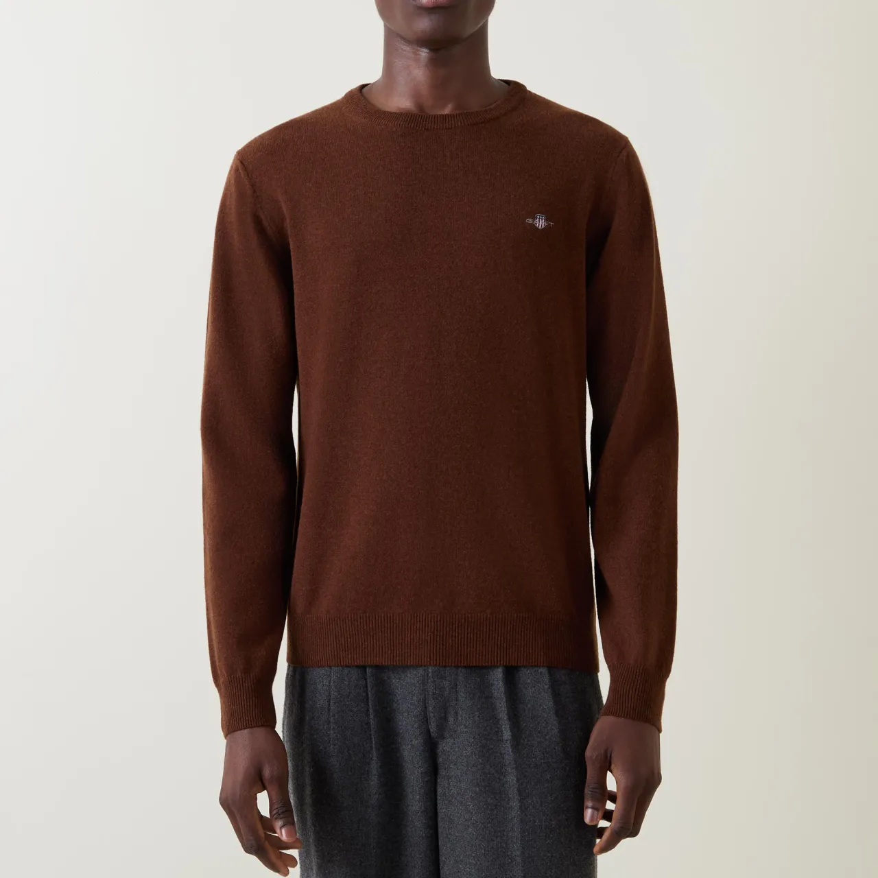 - Crew neckline, long sleeves, ribbed trims, straight hemline, shield logo