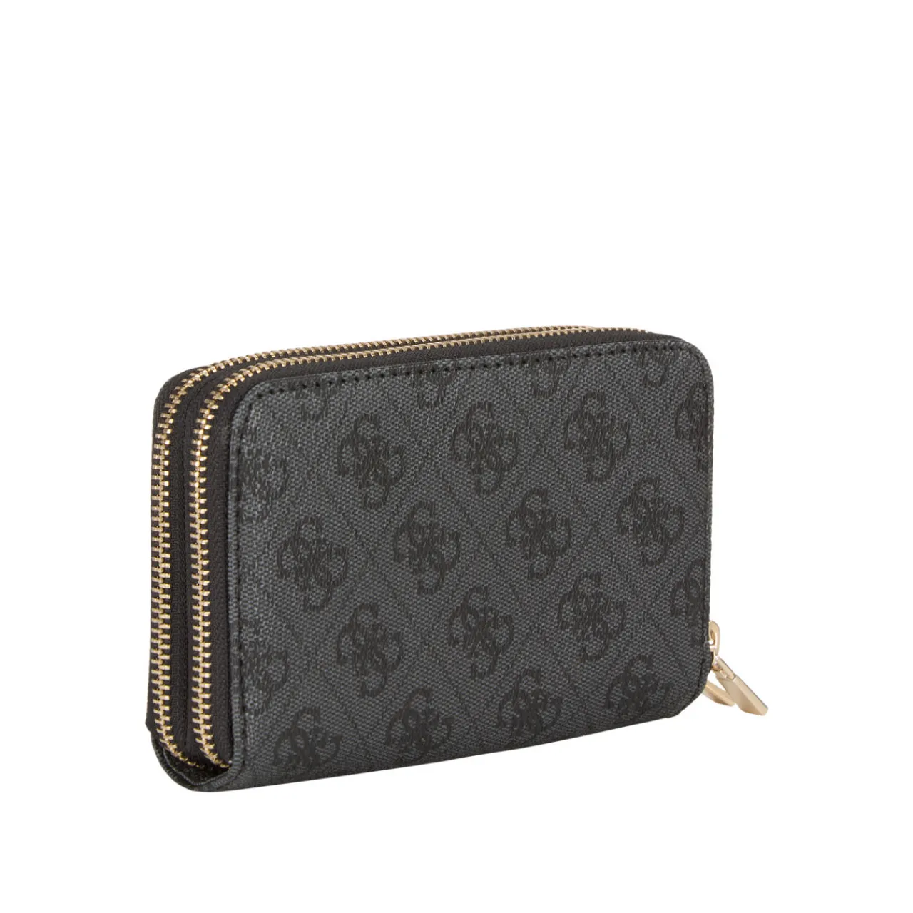 - Double zip-around fastening, coin purse, credit card slots, logo plaque, tonal 4G Peony logo print, gold-tone hardware, wrist strap