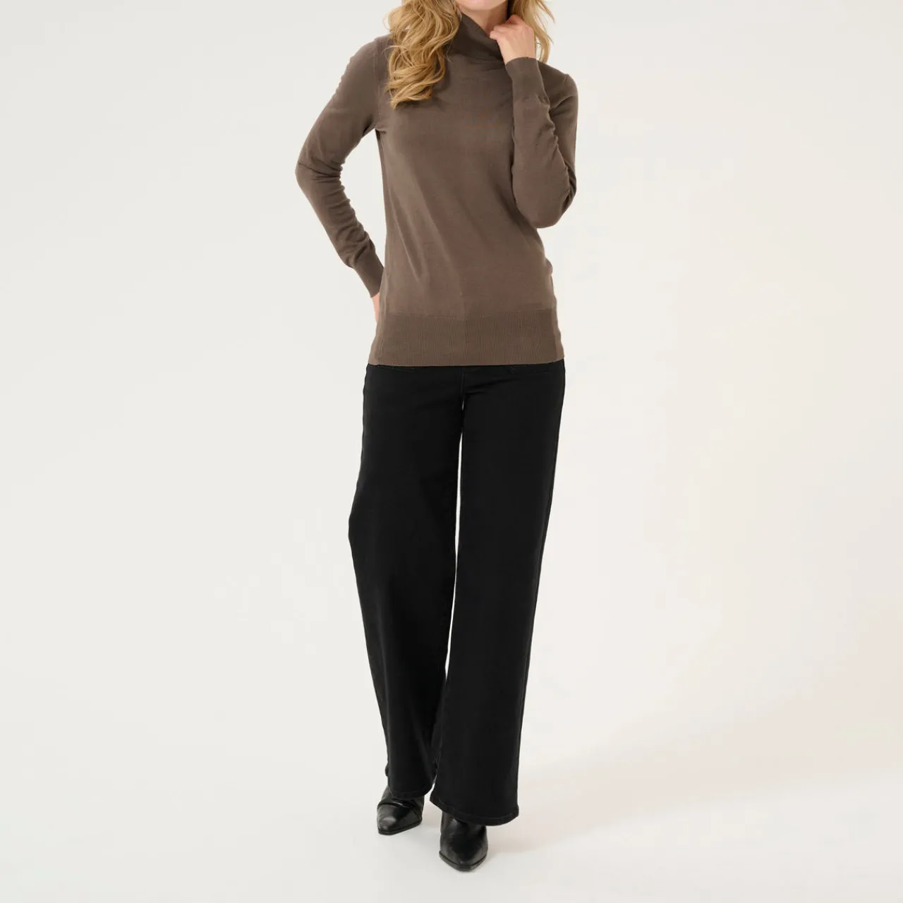 - Roll turtleneck, long sleeves, ribbed trims, soft knit fabric