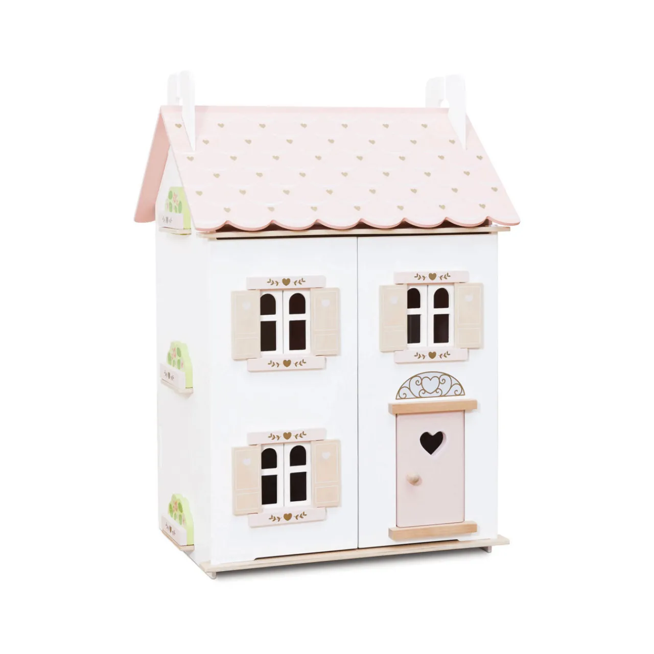 - One wooden dolls house, heart motifs, detailed design, interactive elements
