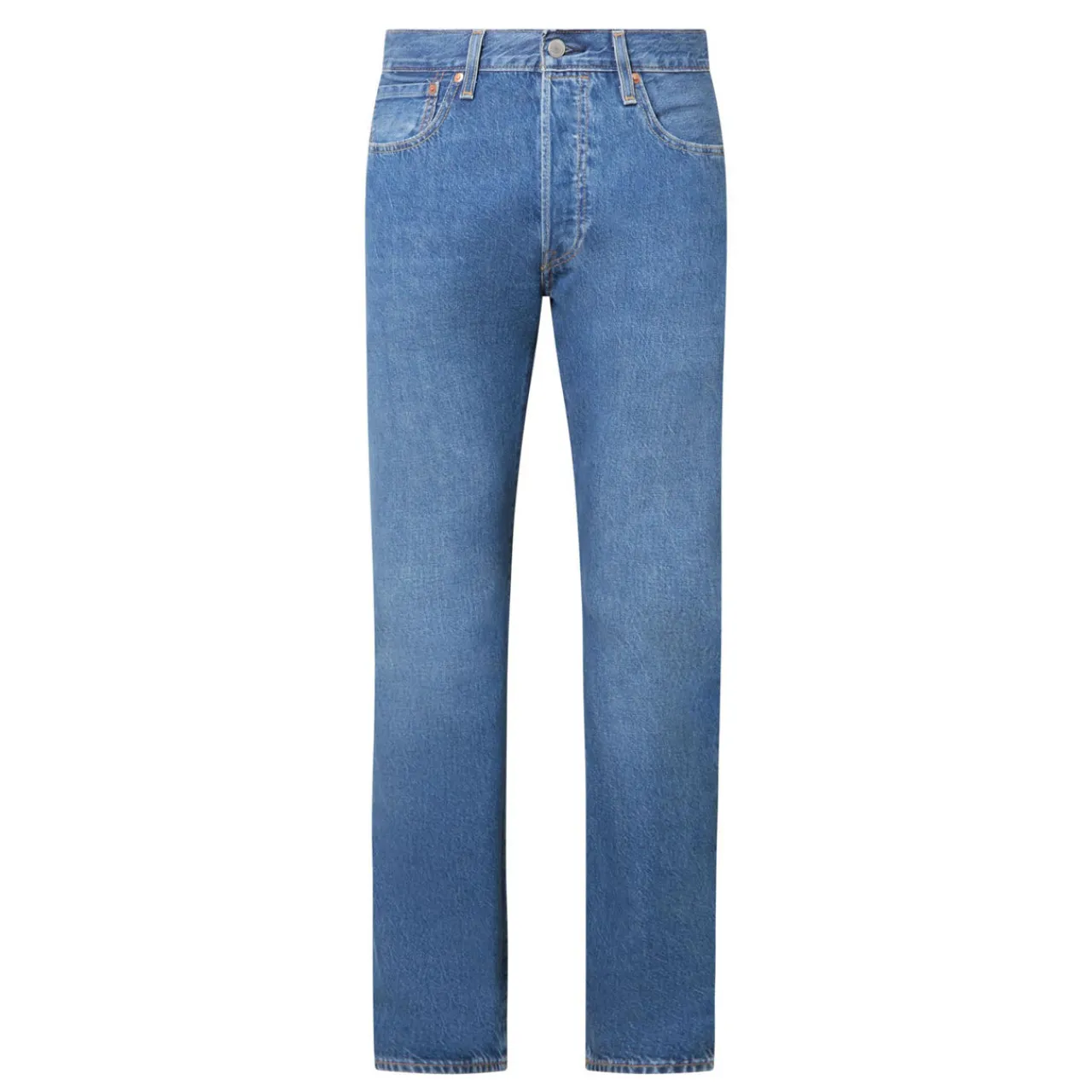 - Mid-rise, straight leg, zip-fly and button fastening, belt loops, five-pocket design, contrast stitching, rear logo patch, whiskering and faded detailing, smooth denim finish