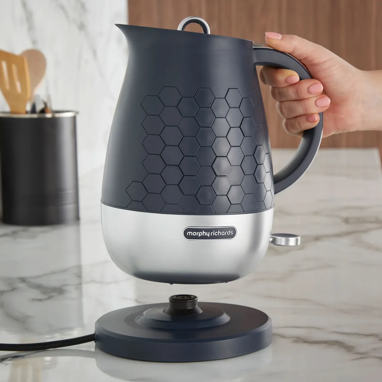 Discover the Morphy Richards Cassini 1.7L Jug Kettle! Boasting a sleek design with efficient functionality, this modern kettle delivers a standout choice for any kitchen. The Cassini range features a distinctive hexagonal design across the kettle, toaster, and microwave, creating a cohesive and modern aesthetic for your kitchen. The jug kettle offers a generous 1.7L capacity and powerful 3kW rapid boil element meaning this electric kettle quickly heats water for multiple cups, saving you time. The carefully designed spout ensures a smooth, splash-free pour every time, while the 360-degree base allows you to place the kettle back onto the base from any angle, perfect for left- or right-handed users!