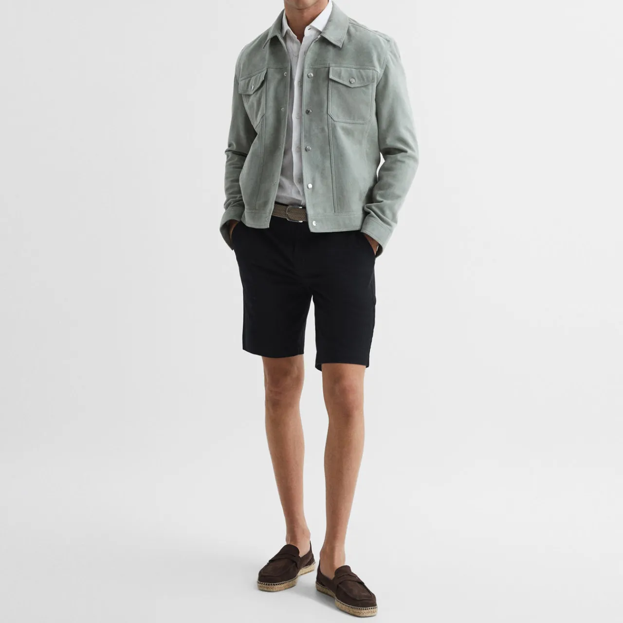 - Zip and button fastenings, slash pockets to each hip, two welt buttons to back