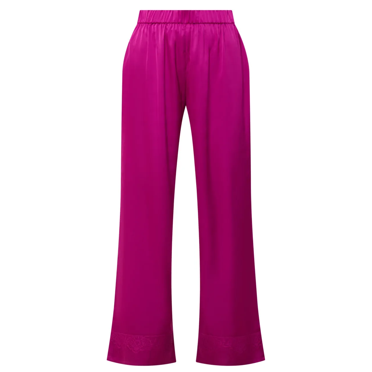- Elasticated waistband, tonal stitching, straight-cut leg, smooth satin finish