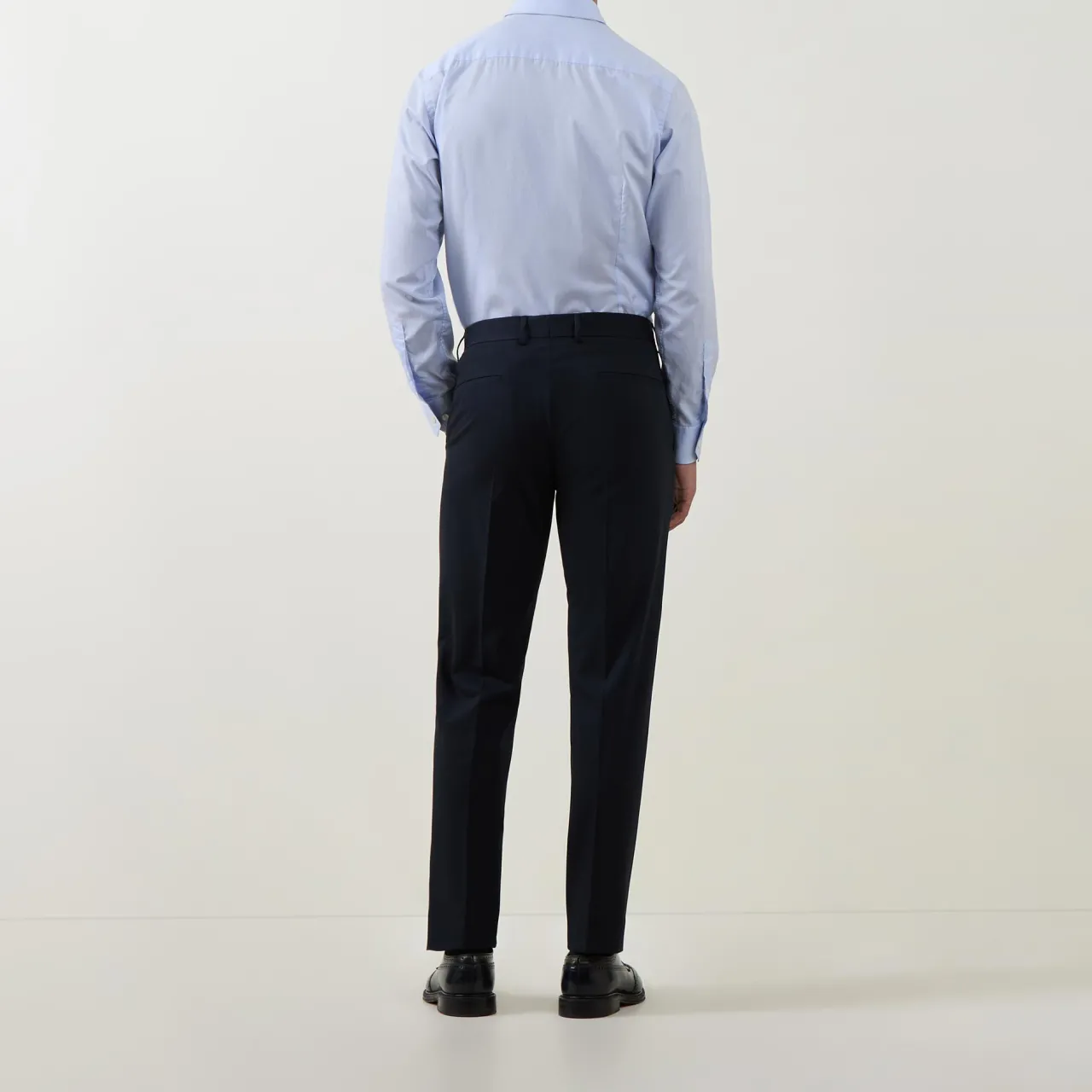 - Belt loops, concealed zip fastening, side pockets, back pockets, pressed creases