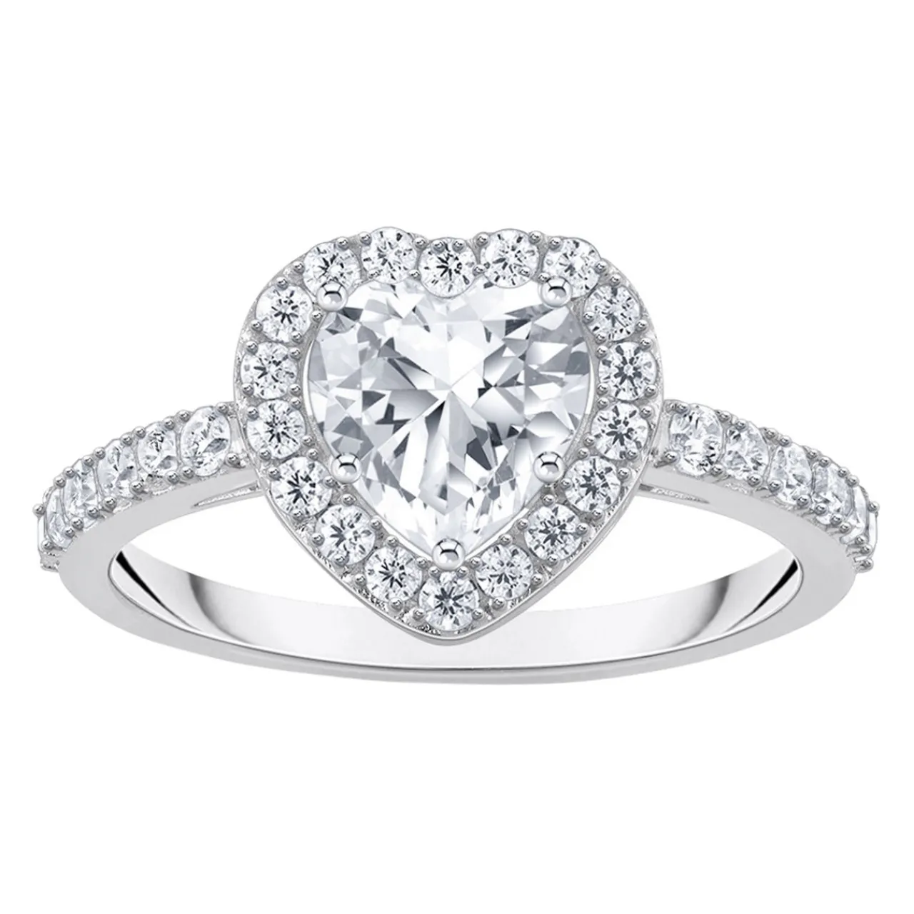 - Halo ring, zirconia heart, ring band with round-cut zirconia stones, 925 silver, gently rounded ring shank for comfortable wear