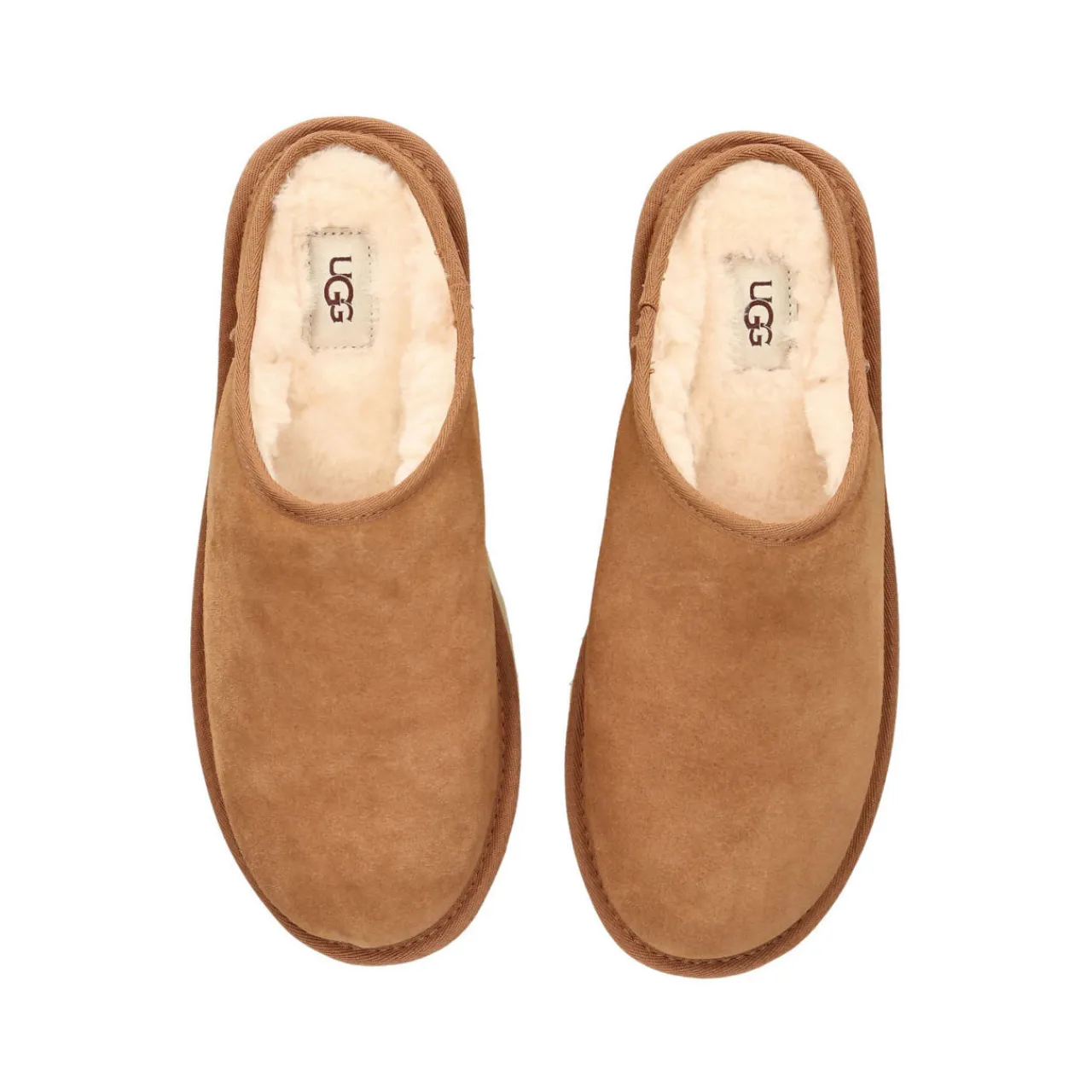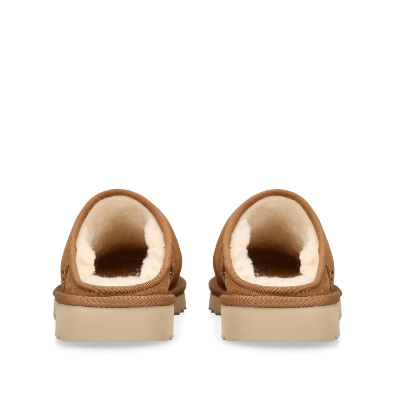 - Slip-on style, round toe, suede upper, cushioned foam insole, wool lined, embossed logo detail