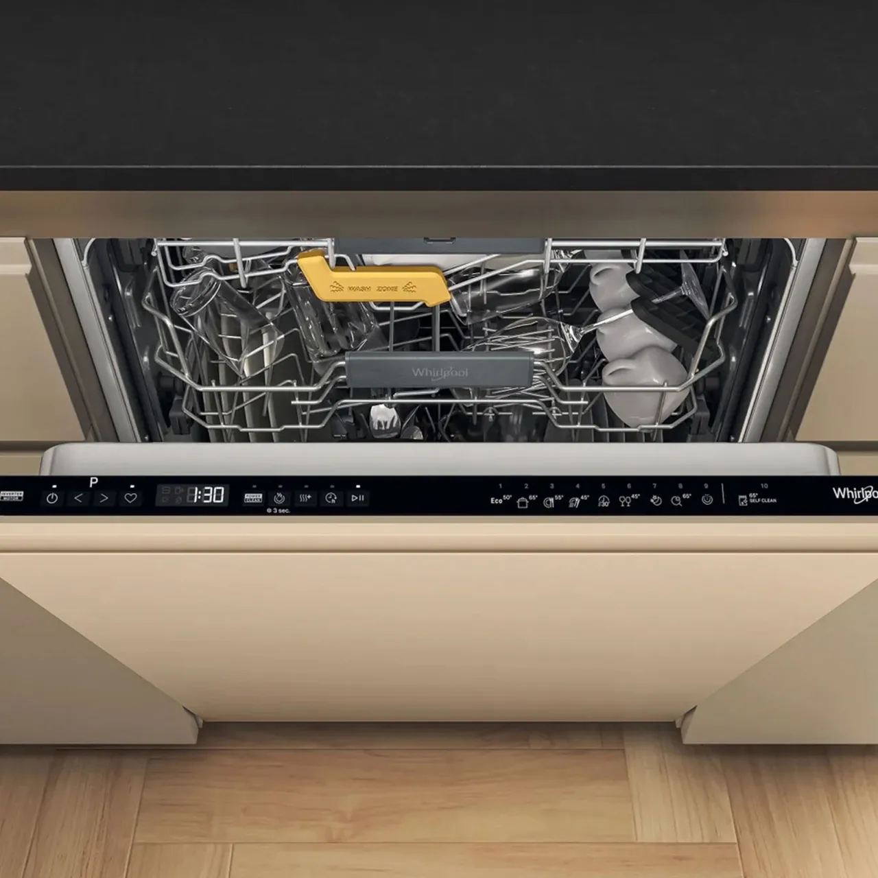 This Whirlpool integrated Dishwasher features: black color. Outstanding B energy rating, for reduced energy consumption. Adjustable feet, for perfect stability on uneven floors and surfaces. Innovative technology ensuring extra silent performance, for a very quiet appliance. Superb cleaning performance, for ideal washing results.