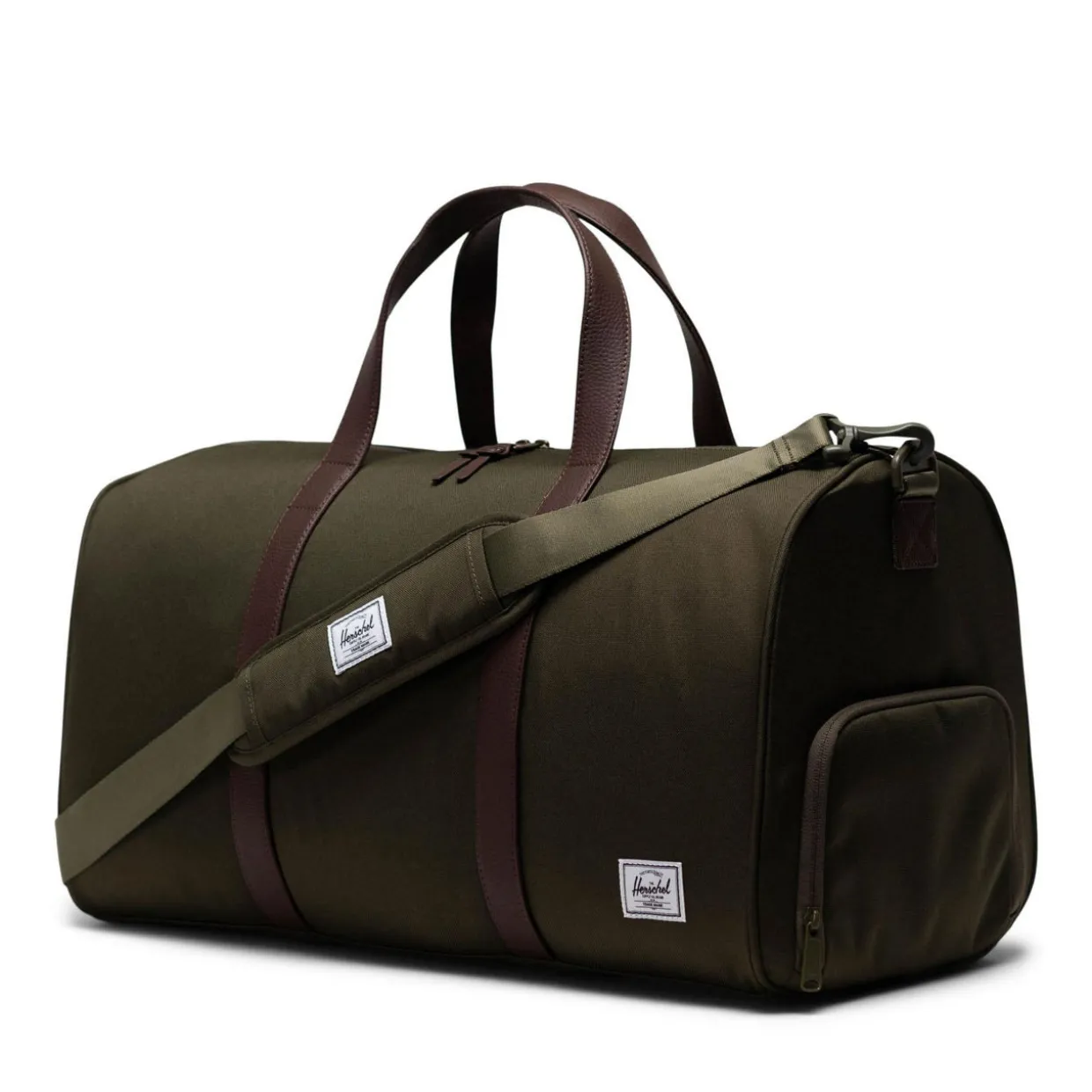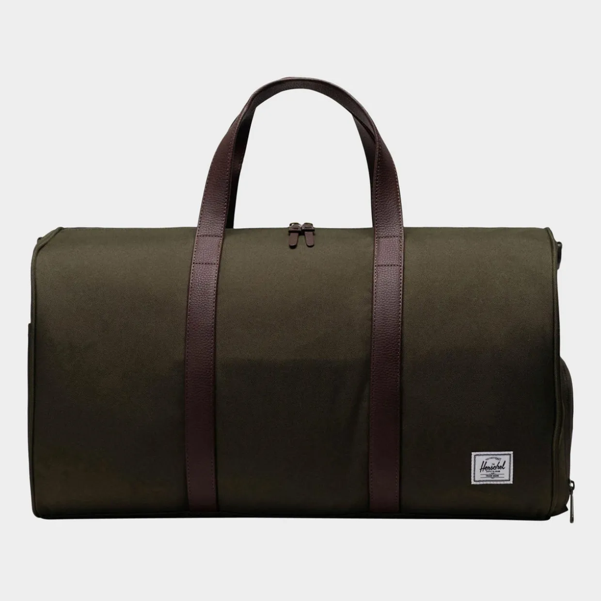 - Top carry handles, detachable shoulder strap, top-zip fastening, shoe compartment, logo badge