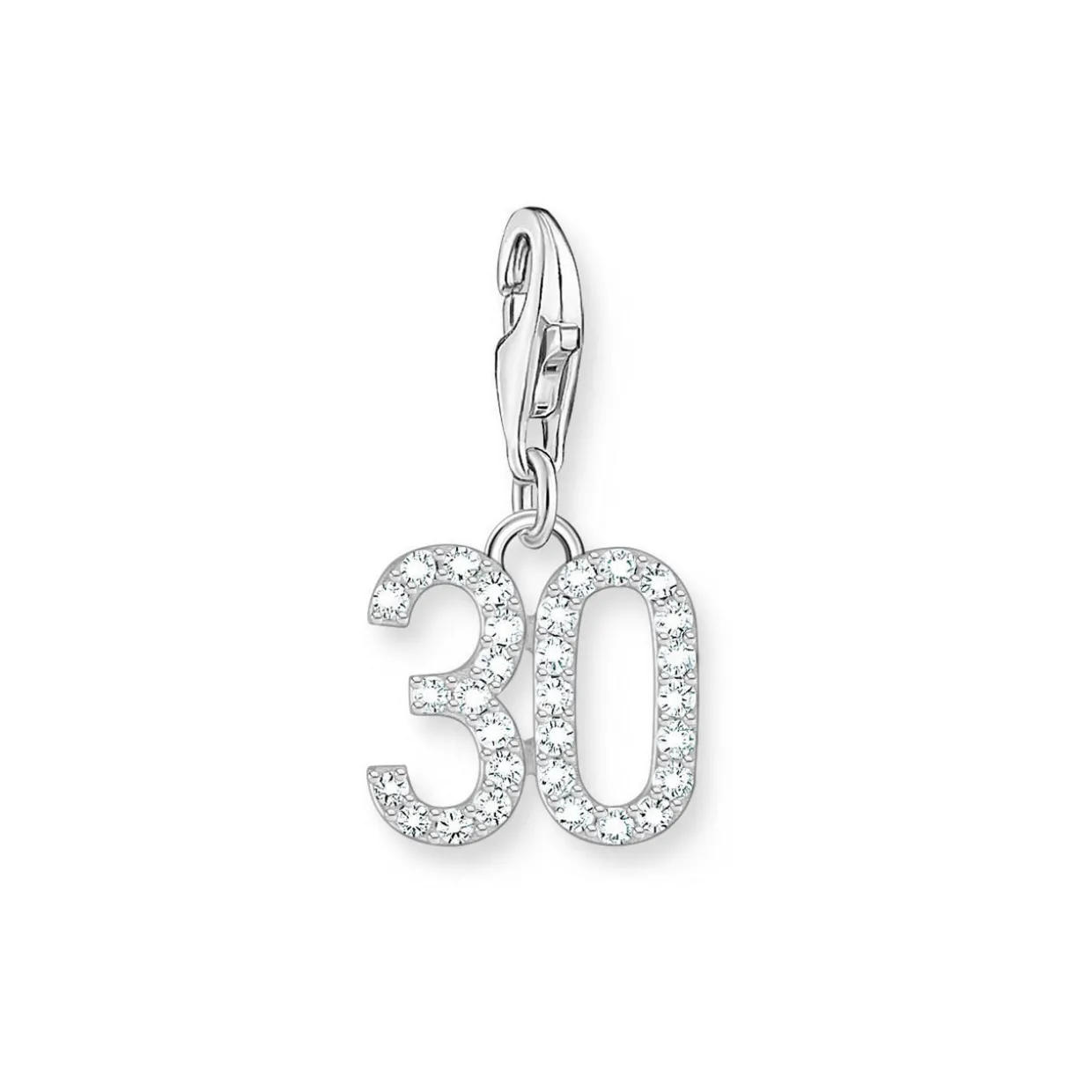 - Number 30 charm design, faceted zirconia stone embellishment, hand-set stones in prong settings, lobster clasp fastening