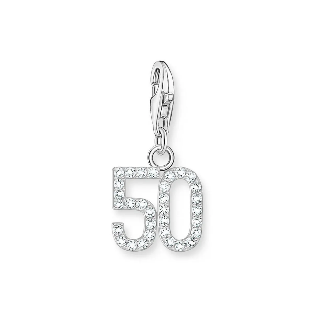 - Number 50 charm design, faceted zirconia stone embellishment, hand-set stones in prong settings, lobster clasp fastening