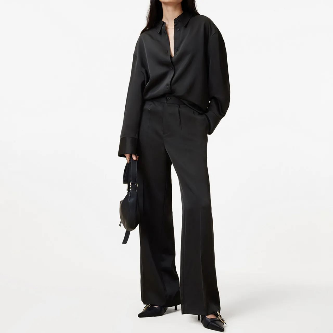 - Wide-leg silhouette, four pockets, zip fly and button fastening, pleat details