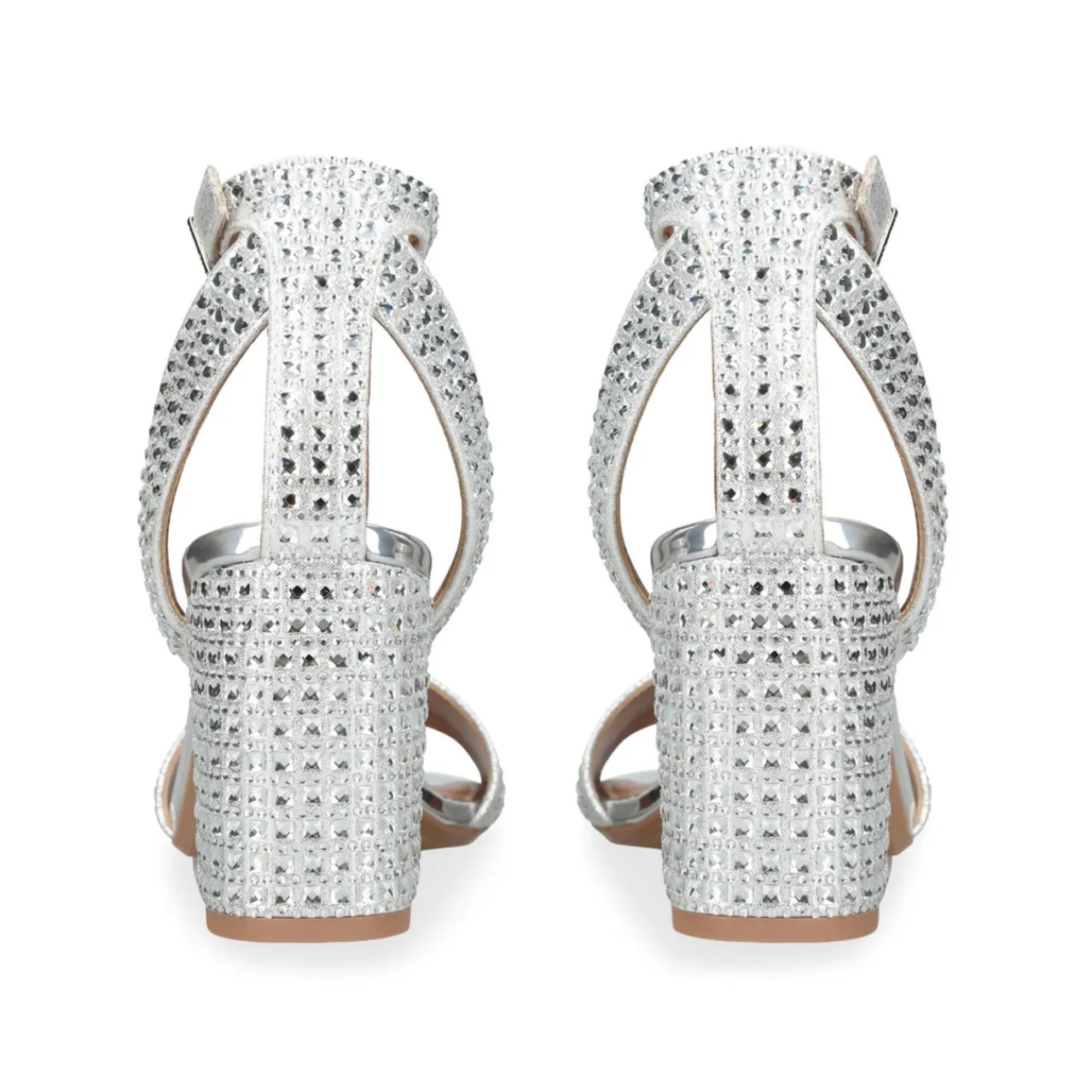- Block heel, round open toe, crystal-embellished upper, ankle strap with buckle fastening, foot strap, ‘All Day Long Technology’, brand logo detail
