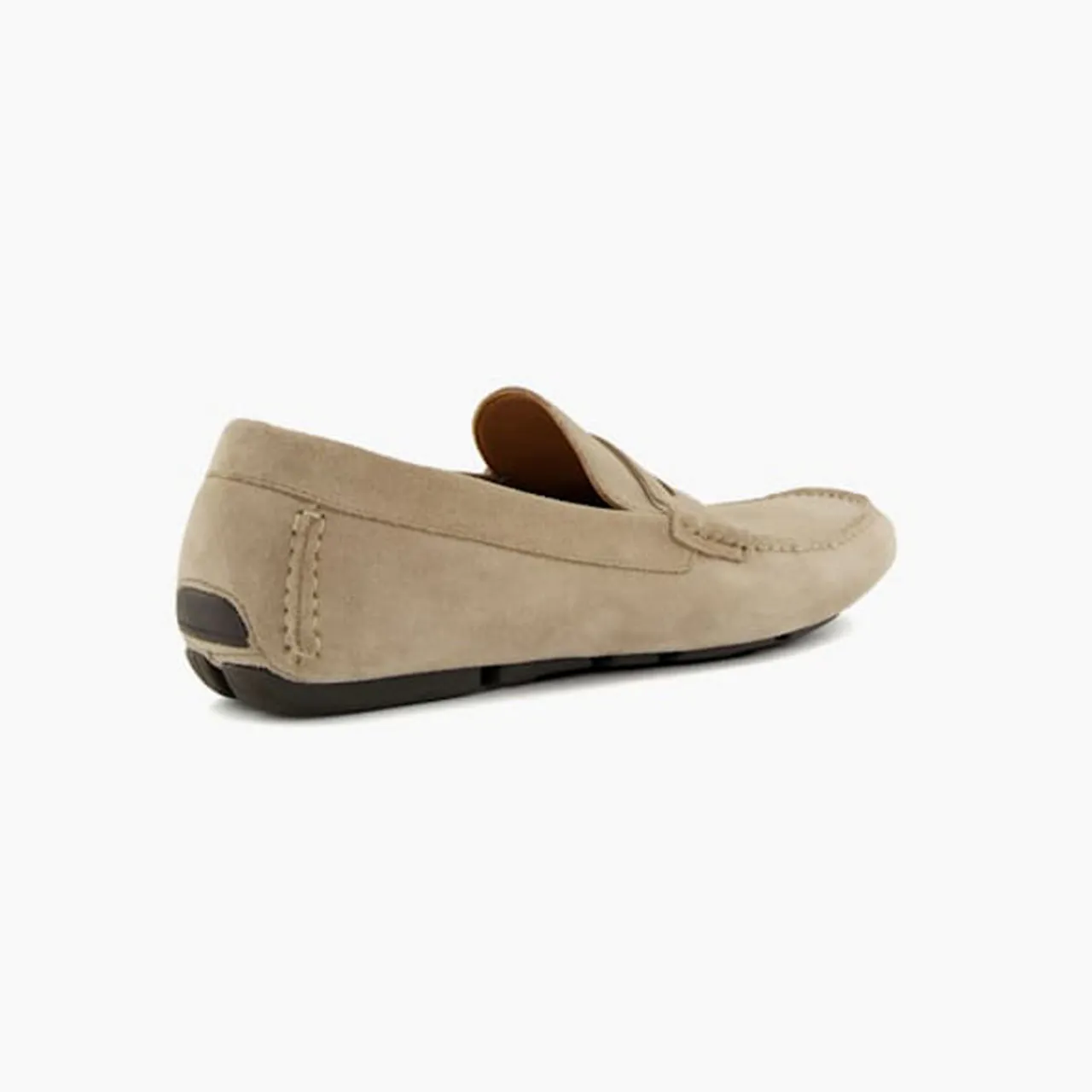- Slip-on style, driver sole, tonal stitching, smooth suede finish