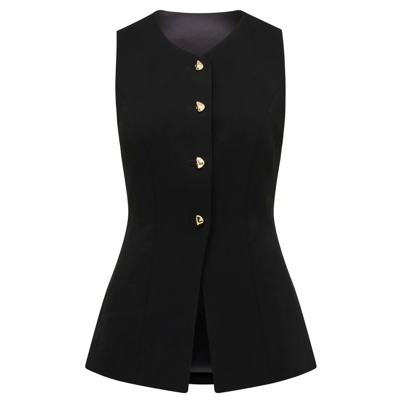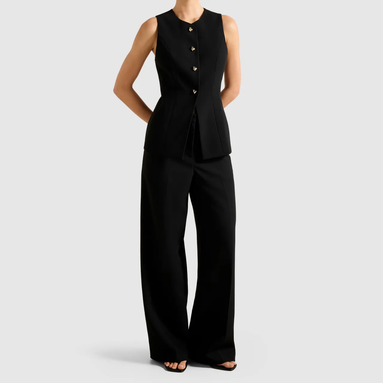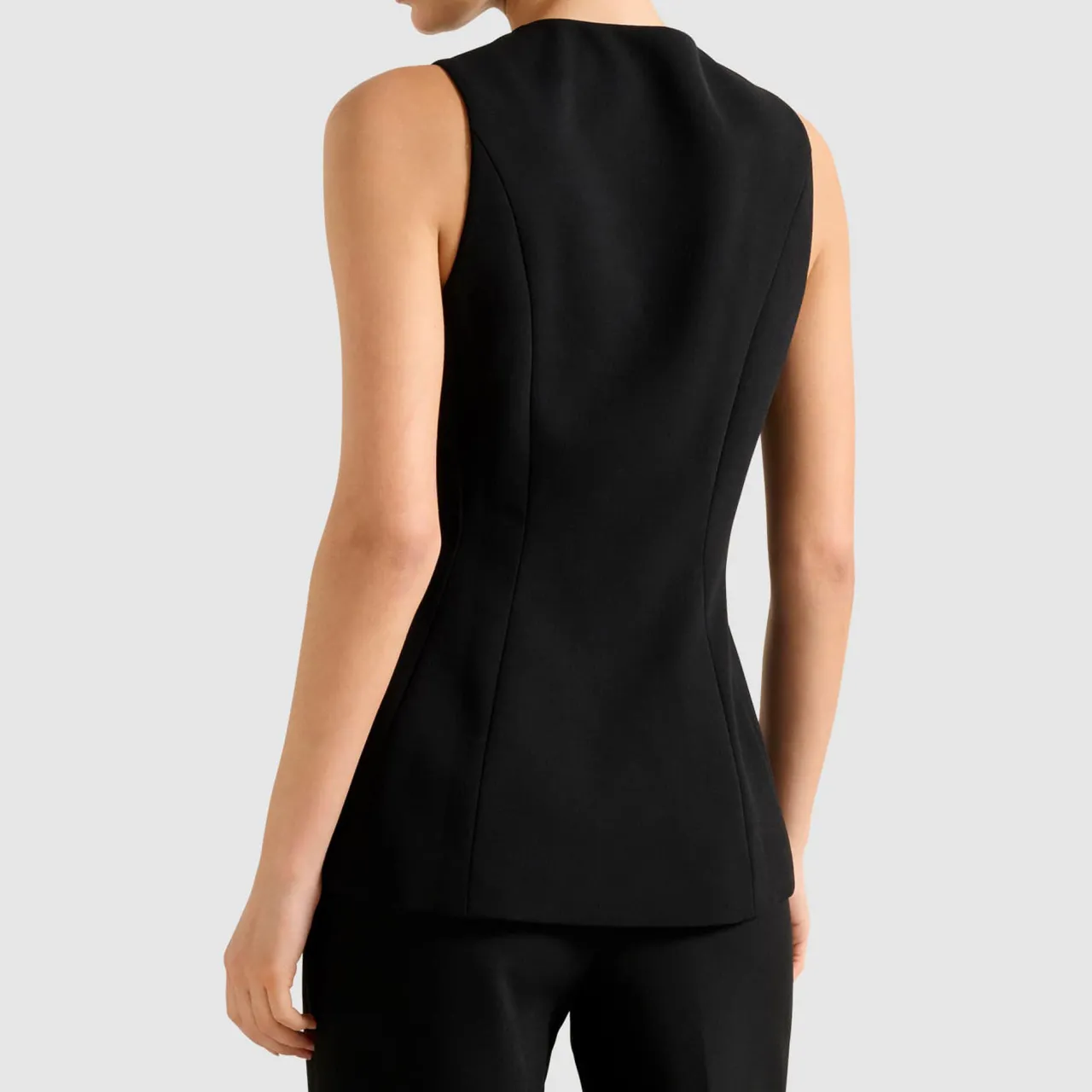- Longline, high neckline, sleeveless design, vertical seams, lined