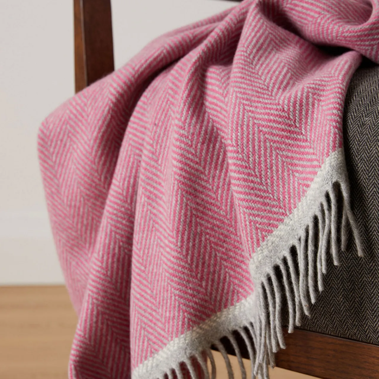 - Herringbone pattern, roll fringed trims, soft touch, logo badge