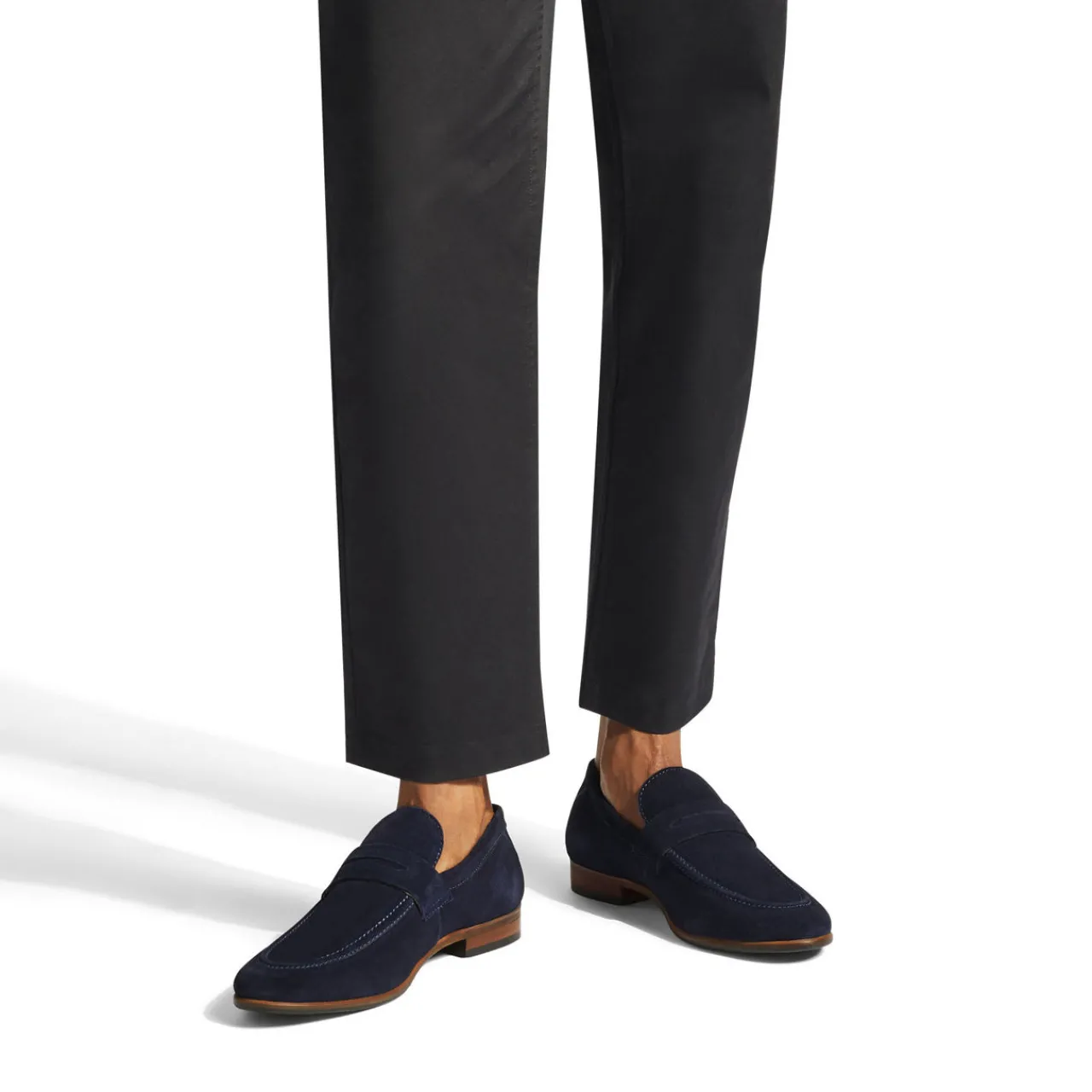 - Slip on, stitching details, penny strap, wood texture sole